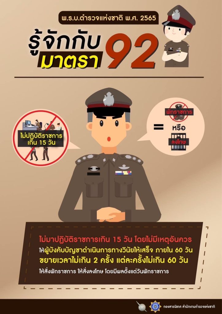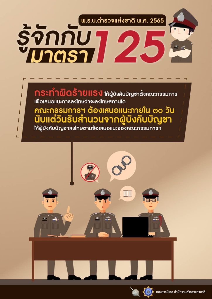 การดำเนินการทางวินัย ตาม พ.ร.บ.ตำรวจแห่งชาติ พ.ศ.2565 มาตรา 51, 92 และ 125 24 มกราคม 2566 โดย khaoniphan13 / ข่าวประชาสัมพันธ์