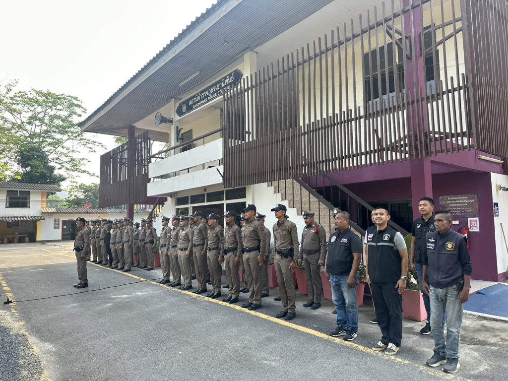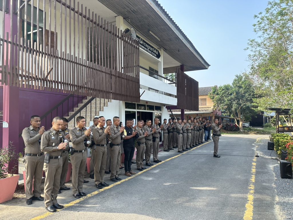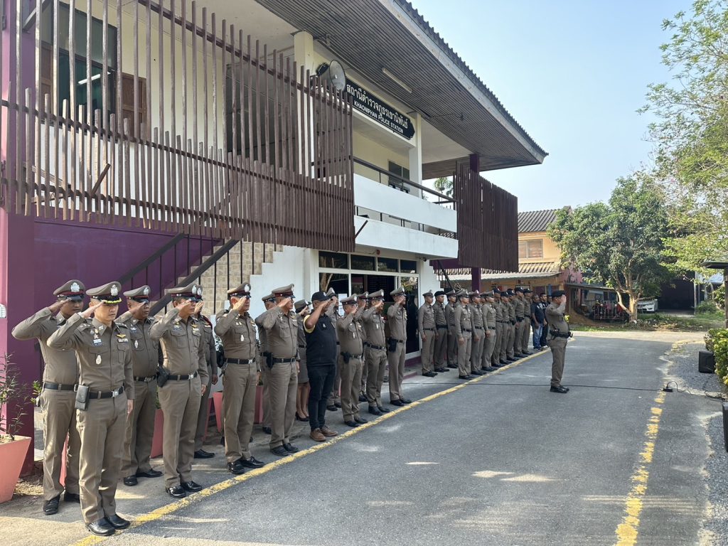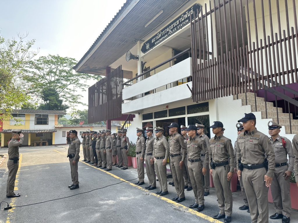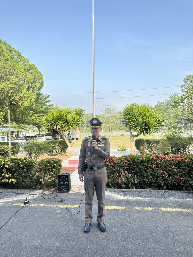 วันที่ 25 เมษายน 2566 เวลา 08:00 น. พ.ต.อ.วรวิทย์ เจริญศุภผล ผกก.สภ.เขานิพันธ์, พ.ต.ท.มงคล เพชรนิล รอง ผกก.ป.สภ.เขานิพันธ์, พ.ต.ท.ธีระวัฒน์ มีรอสอ รอง ผกก.(สอบสวน)สภ.เขานิพันธ์, พ.ต.ท.มานะ คิดเหมาะ รอง ผกก.สส.สภ.เขานิพันธ์, ข้าราชการตำรวจ สภ.เขานิพันธ์, พร้อม นสต.ฝึกปฏิบัติราชการ สภ.เขานิพันธ์