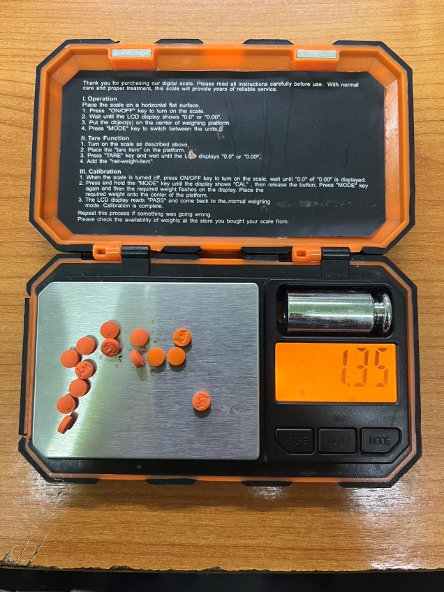 จับกุมตัวผู้ต้องหา “มียาเสพติดให้โทษประเภท 1 (เมทแอมเฟตามีนหรือยาบ้า) 20 ธันวาคม 2567 โดย khaoniphan13 / ข่าวประชาสัมพันธ์,งานสืบสวน,ข่าวประชาสัมพันธ์,งานสืบสวน,งานสืบสวน ธันวาคม วันที่ 20 ธันวาคม 2567 ได้มีการจับกุมตัวผู้ต้องหา “มียาเสพติดให้โทษประเภท 1 (เมทแอมเฟตามีนหรือยาบ้า) ไว้ในครอบครองโดยไม่ได้รับอนุญาต” พร้อมด้วยของกลาง เมทแอมเฟตามีนหรือยาบ้า จำนวน 14 เม็ด น้ำหนักรวม 1.35 กรัม จำนวน 1 ราย 1 คน