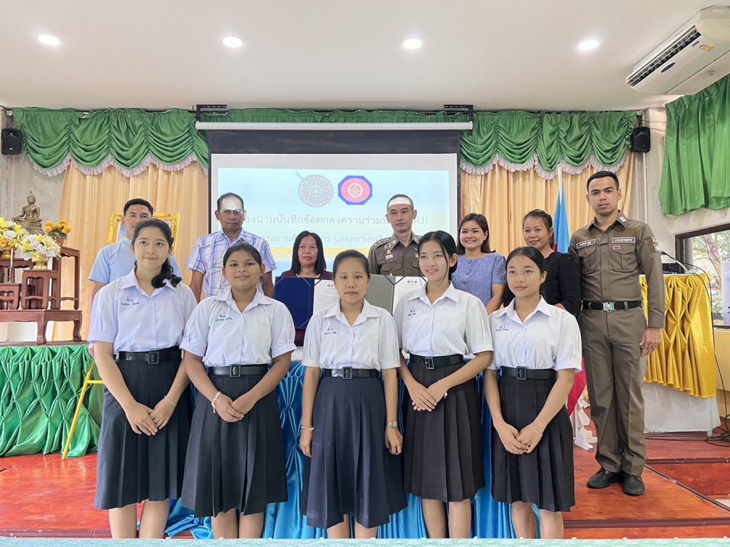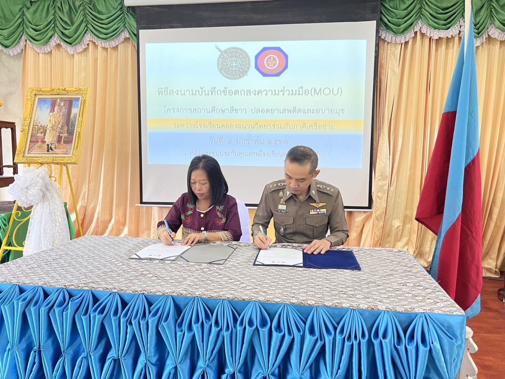 วันที่ 9 มกราคม 2567 เวลา 10:00 น. พ.ต.อ.วรวิทย์ เจริญศุภผล ผกก.สภ.เขานิพันธ์ บันทึกข้อตกลง(MOU) ว่าด้วยความร่วมมือโครงการโรงเรียนสีขาวปลอดยาเสพติดและอบายมุข ระหว่าง นางนฤดี ตุลารักษ์ ผู้อำนวยการโรงเรียนคลองฉนวนวิทยา กับ พ.ต.อ.วรวิทย์ เจริญศุภผล ผกก.สภ.เขานิพันธ์