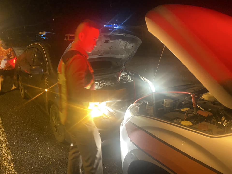 ประชาชนขณะเดินทางถนนสาย 41 (ฝั่งขาขึ้น) ต่อมารถมีปัญหาจึงได้ขอความช่วยเหลือ เจ้าหน้าที่ตำรวจได้เข้าดูแล ทำการช่วยเหลือเบื้องต้นในการเติมน้ำมัน และพวงแบตเตอรี่ จนสามารถเดินทางต่อไปได้
