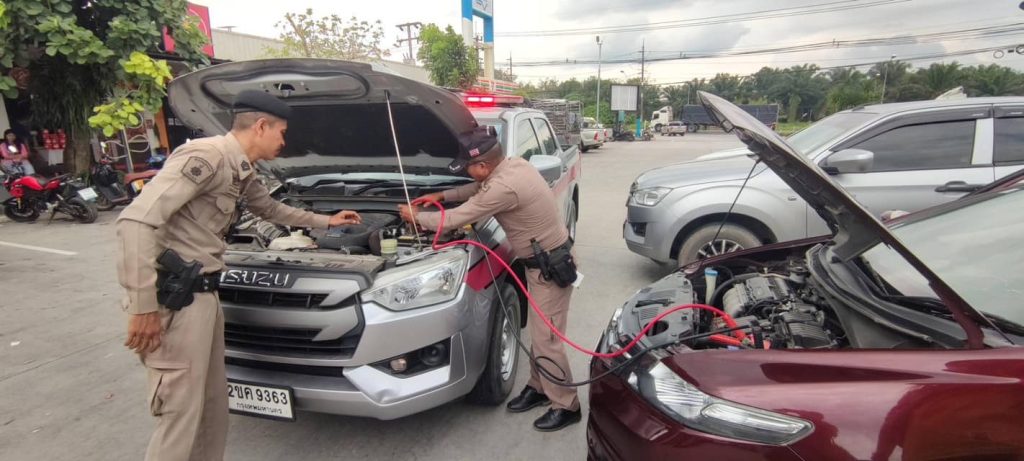 ประชาชนขณะเดินทางถนนสาย 41 แวะพักรถที่ปั้มน้ำมัน ปตท.เขานิพันธ์ ต่อมารถมีปัญหาจึงได้ขอความช่วยเหลือ เจ้าหน้าที่ตำรวจได้เข้าดูแล ทำการช่วยเหลือเบื้องต้นในการพวงแบตเตอรี่ สามารถเดินทางต่อไปได้