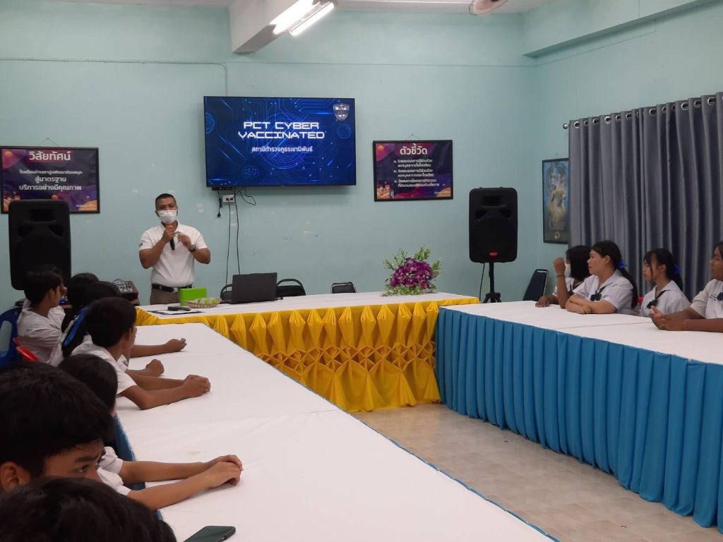 ประชาสัมพันธ์ ในสถานศึกษาเกี่ยวกับการบรรยายความรู้ “วิธีการป้องกันภัยจากอาชญากรรมทางเทคโนโลยี เพื่อไม่ให้ตกเป็นเหยื่อจากพวกมิจฉาชีพ” และมีกิจกรรมให้ร่วมทำแบบทดสอบ 40 ข้อ แก่นักเรียนโรงเรียนบ้านเขาปูน