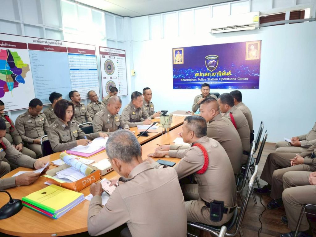 ประชุมบริหารประจำเดือน กรกฎาคม 2568 สถานีตำรวจภูธรเขานิพันธ์ เพื่อมอบนโยบายและถ่ายทอดข้อสั่งการของผู้บังคับบัญชา ให้แก่ข้าราชการตำรวจทราบ และสอบถามปัญหาข้อขัดข้องและแนวทางแก้ไขปัญหาจากการปฏิบัติหน้าที่