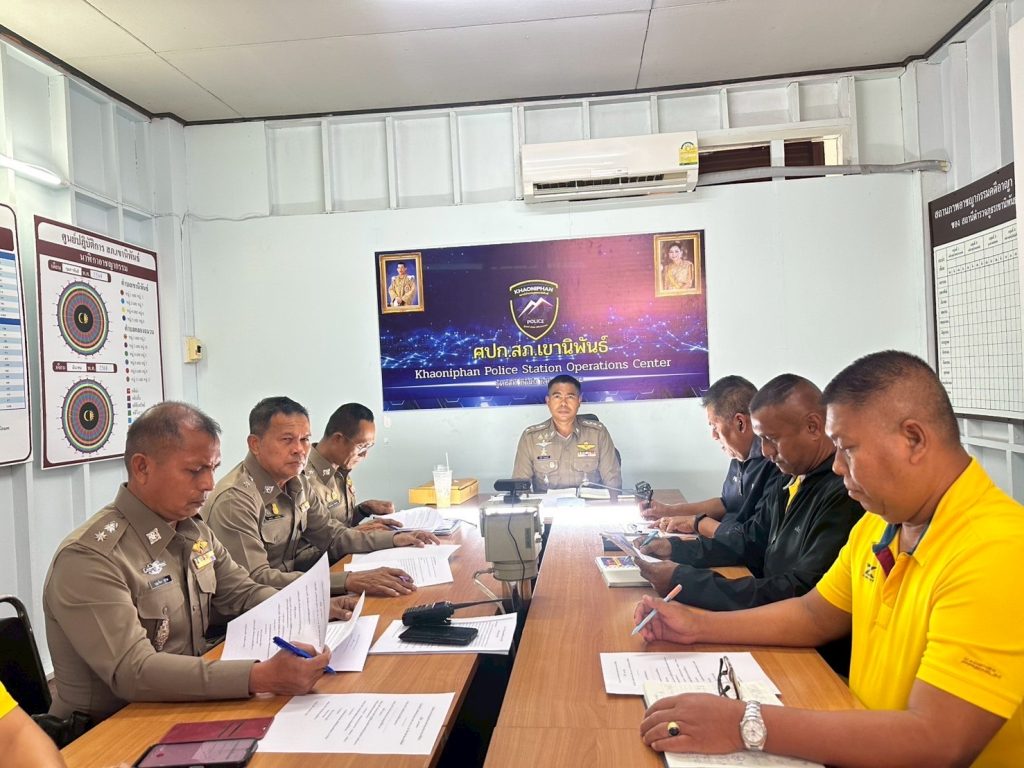 วันที่ 25 สิงหาคม 2568 เวลา 10:00 น. ว่าที่ พ.ต.อ.เวทิศ ปานชาตรี ผกก.สภ.เขานิพันธ์, พ.ต.ท.มงคล เพชรนิล รอง ผกก.ป.สภ.เขานิพันธ์, พ.ต.ท.ธีระวัฒน์ มีรอสอ รอง ผกก.(สอบสวน)สภ.เขานิพันธ์, พ.ต.ท.นพดล เกิดกุลรัตน์ รอง ผกก.สส.สภ.เขานิพันธ์ พร้อมด้วยข้าราชการตำรวจในสังกัด