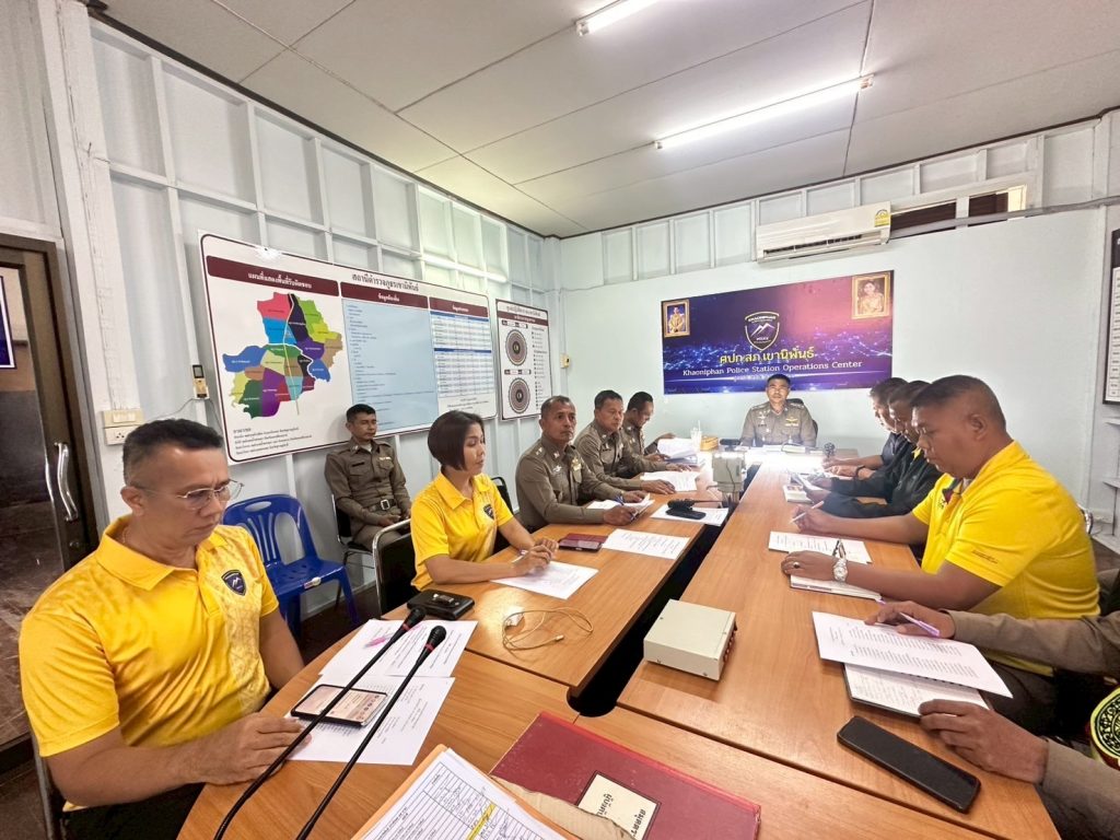ประชุมบริหารประจำเดือน สิงหาคม 2568 สถานีตำรวจภูธรเขานิพันธ์ เพื่อมอบนโยบายและถ่ายทอดข้อสั่งการของผู้บังคับบัญชา ให้แก่ข้าราชการตำรวจทราบ และสอบถามปัญหาข้อขัดข้องและแนวทางแก้ไขปัญหาจากการปฏิบัติหน้าที่