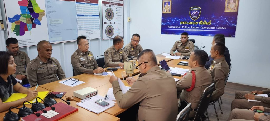 วันที่ 6 มีนาคม 2569 เวลา 09:00 น. พ.ต.อ.เวทิศ ปานชาตรี ผกก.สภ.เขานิพันธ์, พ.ต.ท.มงคล เพชรนิล รอง ผกก.ป.สภ.เขานิพันธ์, พ.ต.ท.ธีระวัฒน์ มีรอสอ รอง ผกก.(สอบสวน)สภ.เขานิพันธ์ ข้าราชการตำรวจในสังกัด
