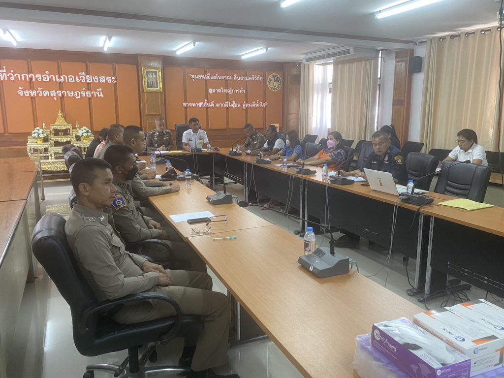 ณ ห้องประชุมทุเรียนเจ้าเมือง ที่ว่าการอำเภอเวียงสระ จังหวัดสุราษฎร์ธานี