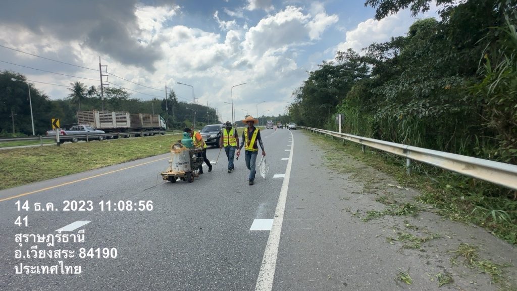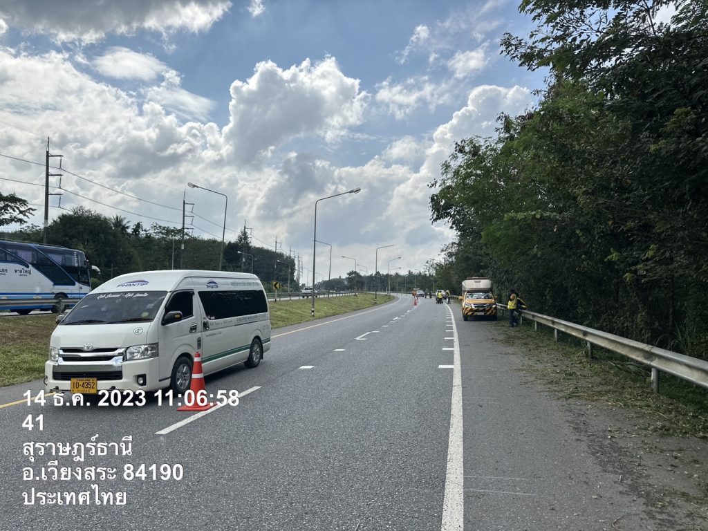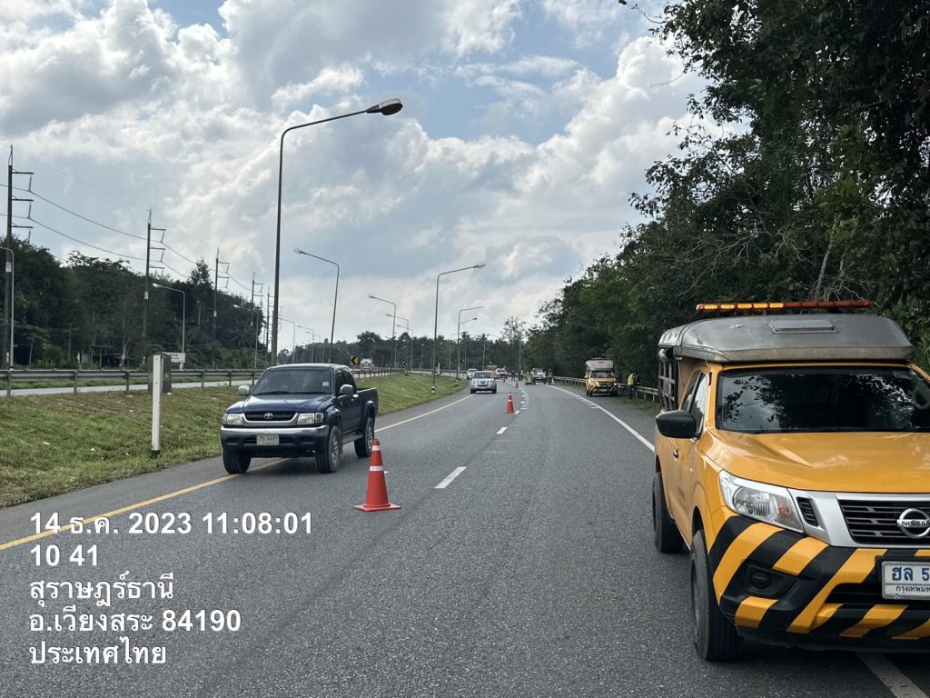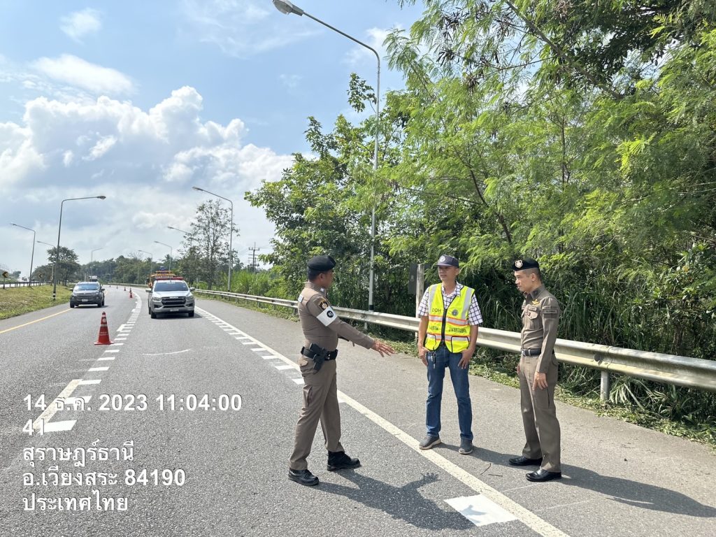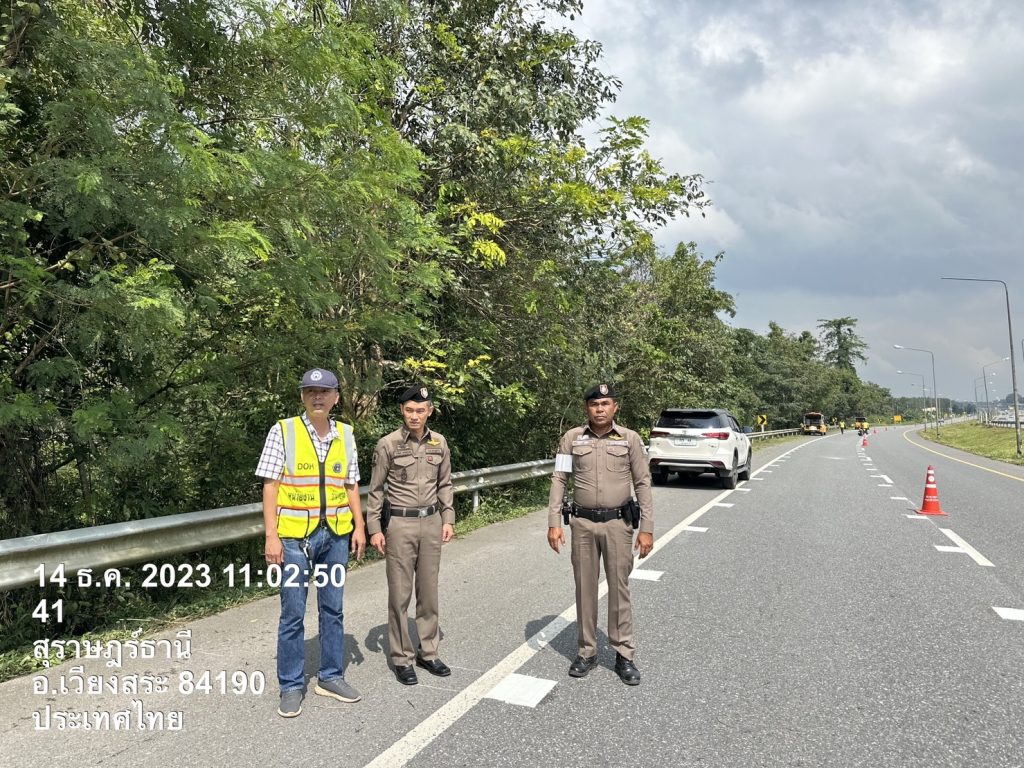 ประสานแขวงทางหลวงสุราษฎร์ธานีที่ 3 (เวียงสระ) ติดตั้งเส้นชะลอความเร็ว เพื่อแจ้งเตือนให้ผู้ขับขี่ได้ระมัดระวังและเตรียมลดความเร็วสำหรับทางโค้ง เพื่อป้องกันและลดการเกิดอุบัติเหตุทางถนน
