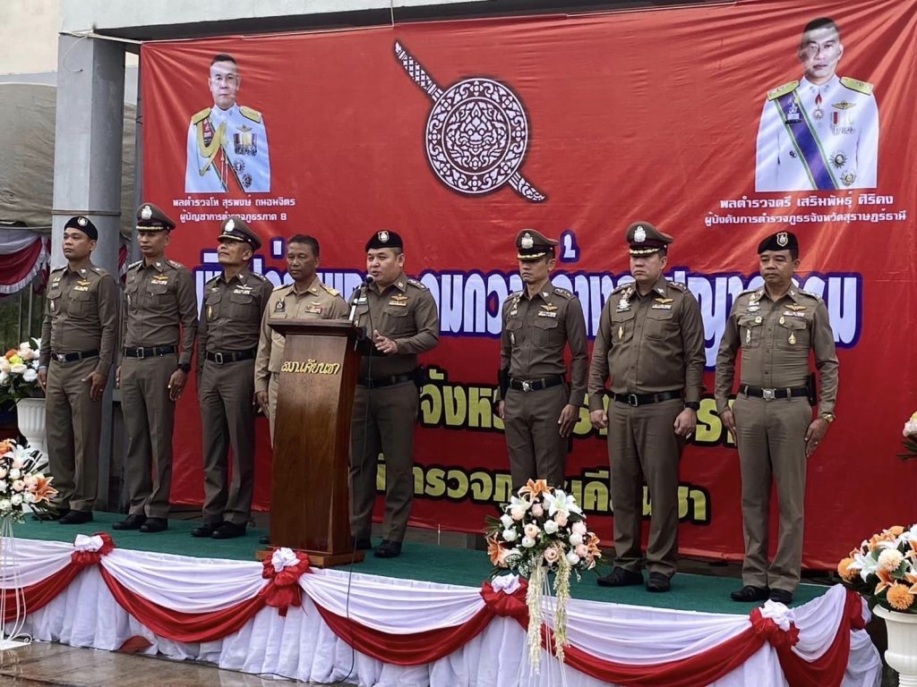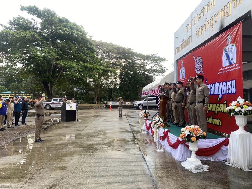 ร่วมปล่อยแถวระดมกวาดล้างอาชญากรรม ช่วงก่อนวันหยุดยาวเทศกาลสงกรานต์ (ห้วงวันที่ 1 – 10 เมษายน 2567) โดยมี พ.ต.อ.ณัฐชนน เกิดก่อ รอง ผบก.ภ.จว.สุราษฎร์ธานี เป็นประธานในพิธี
