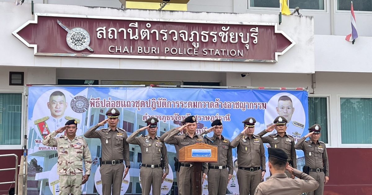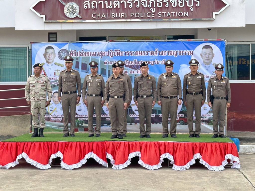 ร่วมปล่อยแถวระดมกวาดล้างอาชญากรรม ประจำเดือน มกราคม 2567 โดยมี พ.ต.อ.ศิริชัย สุขสาตต์ รอง ผบก.ภ.จว.สุราษฎร์ธานี เป็นประธานในพิธี