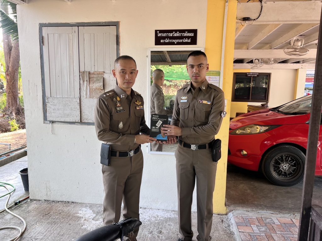 ณ มุมโครงการสวัสดิการตัดผม สถานีตำรวจภูธรเขานิพันธ์