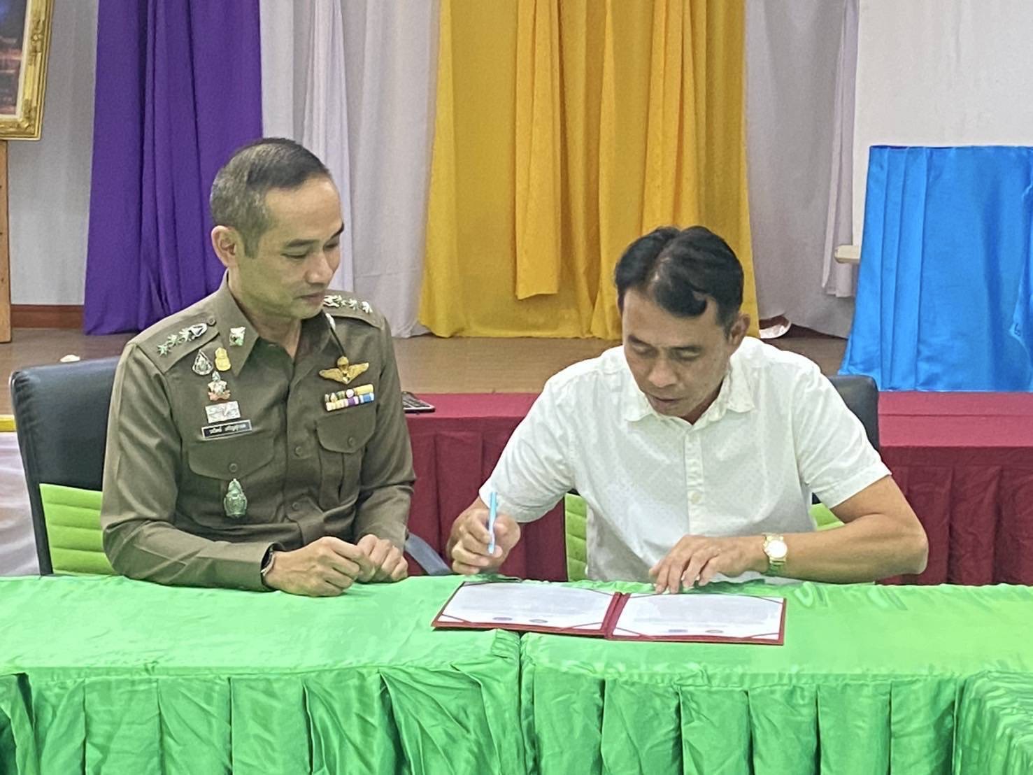 ร่วมลงนามบันทึกข้อตกลงความร่วมมือ (MOU)โครงการป้องกันอุบัติเหตุจราจร ระหว่างสถานีตำรวจภูธรเขานิพันธ์ กับหน่วยงาน ส่วนราชการ ทั้งภาครัฐและเอกชนในพื้นที่ เพื่อความปลอดภัยทางถนน ลดเจ็บ ลดตาย เพิ่มอัตราการสวมหมวกนิรภัยและคาดเข็มขัดนิรภัย 100 เปอร์เซ็นต์