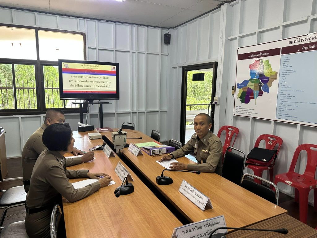 โดยมี คณะกรรมการตรวจติดตามประเมินผลตามแนวทางการยกระดับการบริการประชาชนของสถานีตำรวจประจำปี พ.ศ.2566 ของ ภ.จว.สุราษฎร์ธานี เดินทางตรวจติดตามประเมินผลของ สภ.เขานิพันธ์