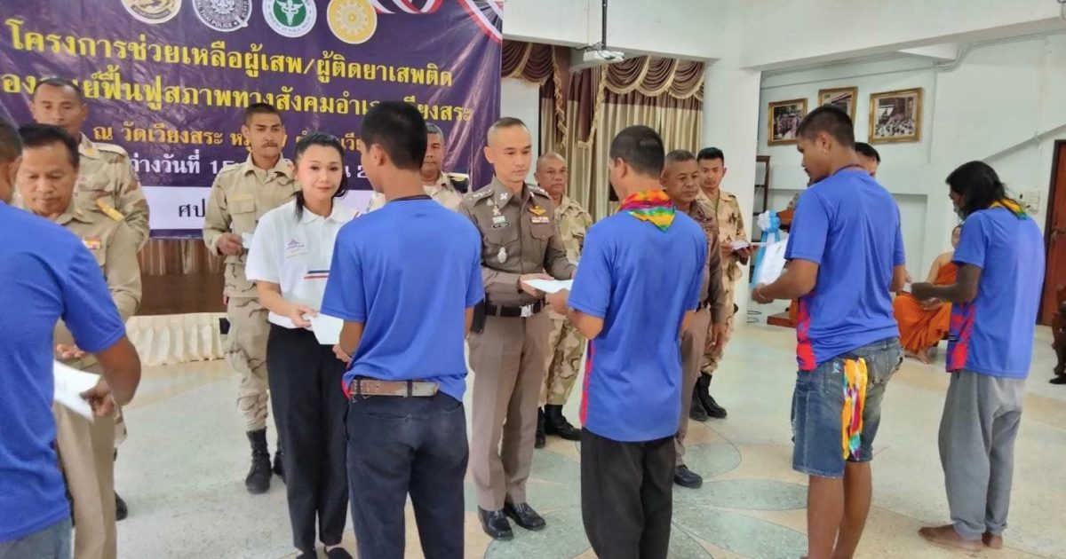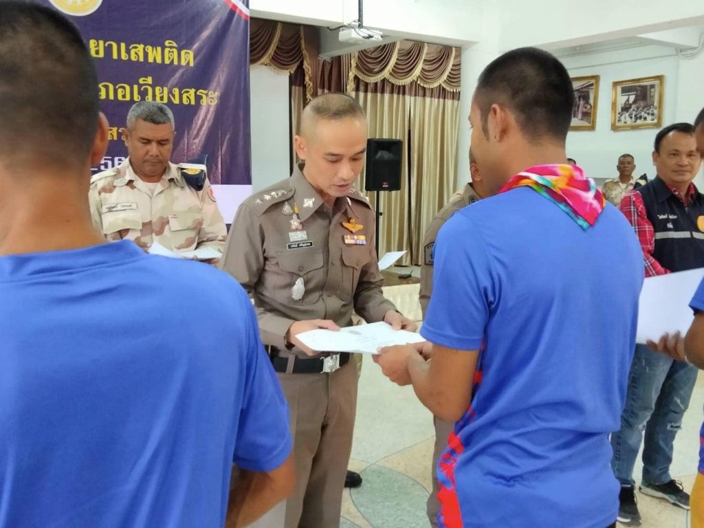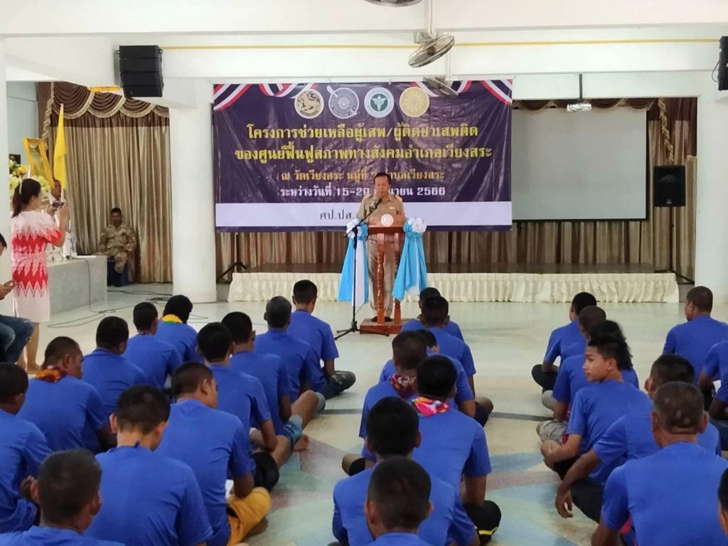 ร่วมพิธีปิดโครงการช่วยเหลือผู้เสพ/ผู้ติดยาเสพติด ของศูนย์ฟื้นฟูสภาพทางสังคมอำเภอเวียงสระ ประจำปีงบประมาณ 2566