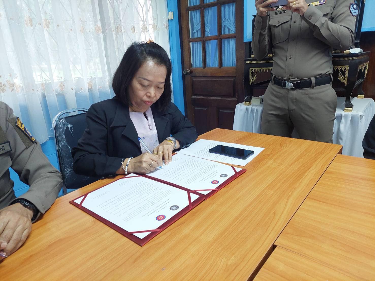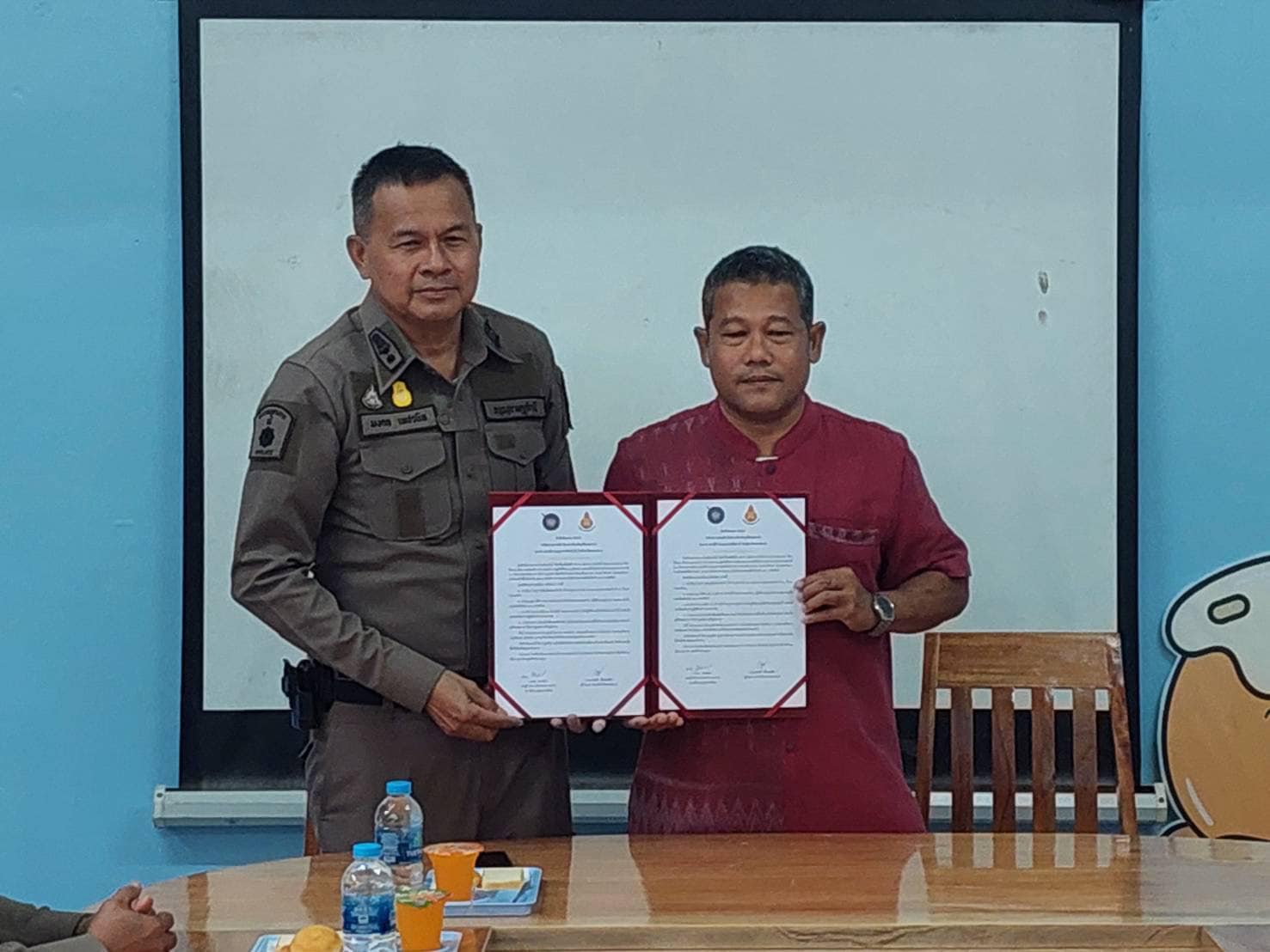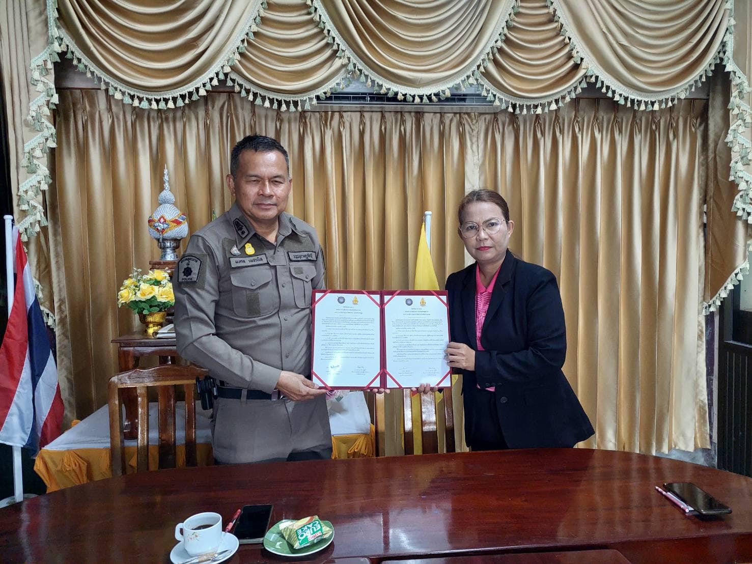 ร่วมลงนามบันทึกข้อตกลงความร่วมมือ (MOU) โครงการป้องกันอุบัติเหตุจราจร ระหว่างสถานีตำรวจภูธรเขานิพันธ์ กับหน่วยงาน ส่วนราชการ ทั้งภาครัฐและเอกชนในพื้นที่ เพื่อความปลอดภัยทางถนน ลดเจ็บ ลดตาย เพิ่มอัตราการสวมหมวกนิรภัยและคาดเข็มขัดนิรภัย 100 เปอร์เซ็นต์ ดังนี้