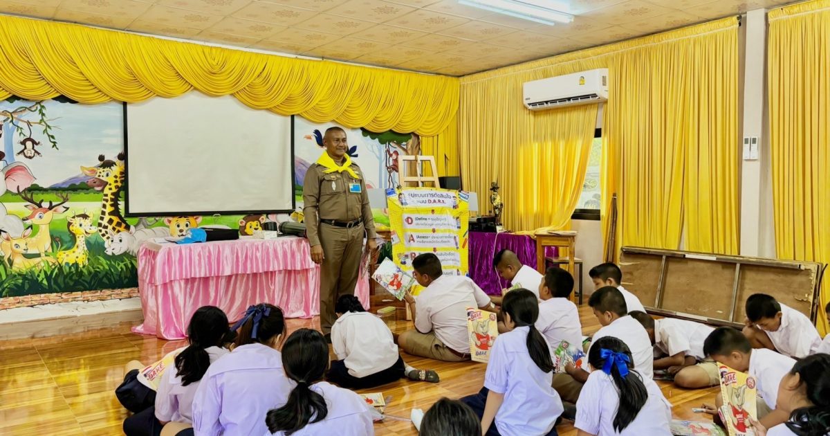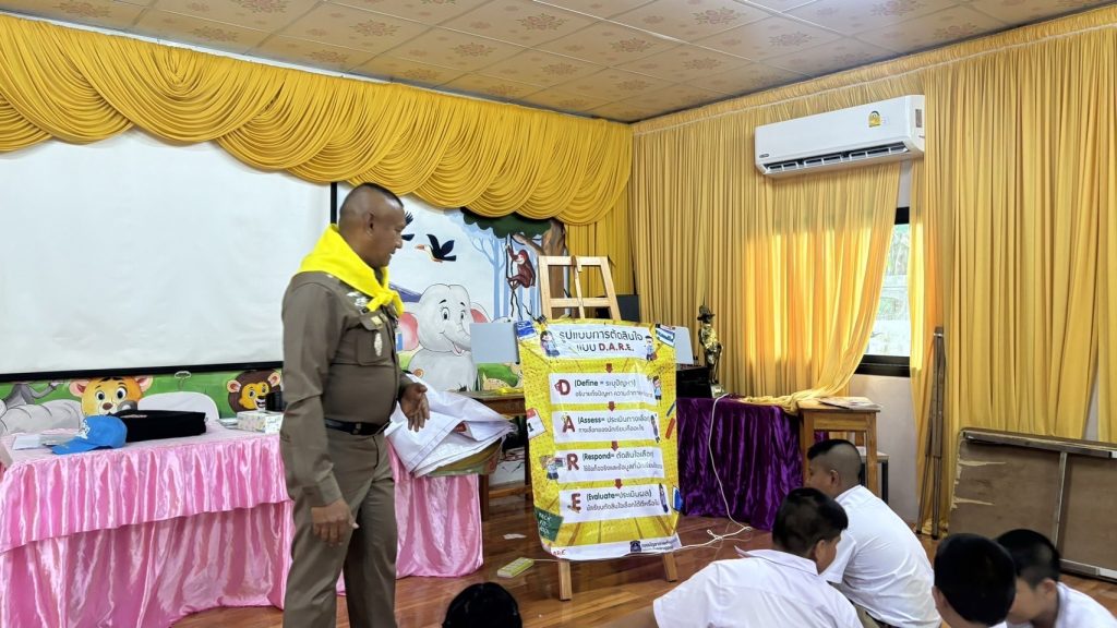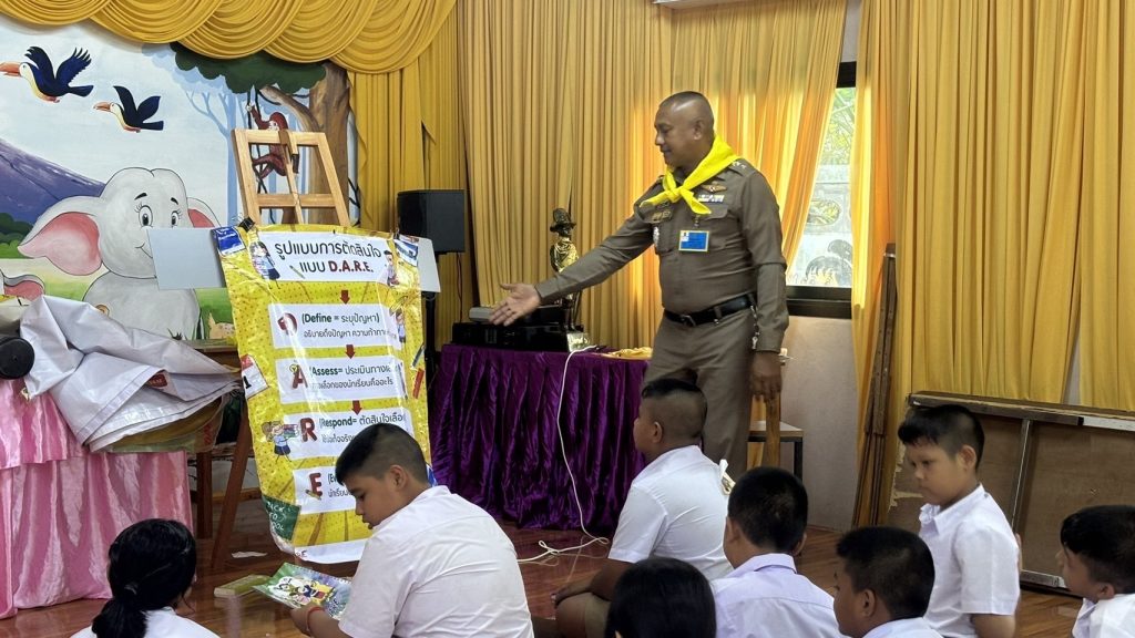 4. การปฏิบัติ : ทำหน้าที่วิทยากรครูตำรวจ D.A.R.E.ให้ความรู้ตาม