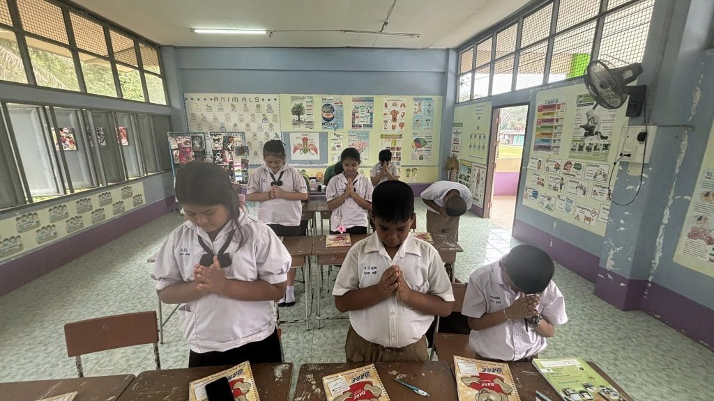 4. การปฏิบัติ : ทำหน้าที่วิทยากรครูตำรวจ D.A.R.E.ให้ความรู้ตาม
