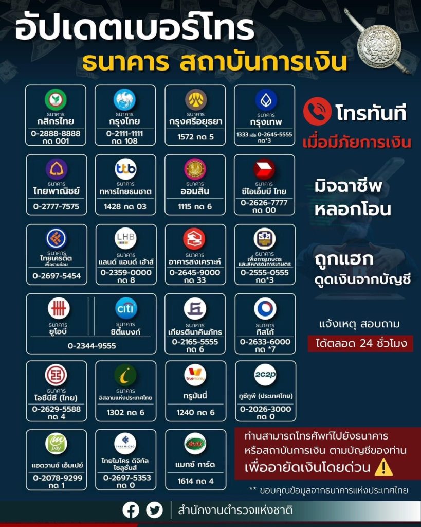 ⚠️สำหรับโทรด่วน “อายัดเงินในบัญชี” กรณีมีภัยทางการเงิน อาทิ มิจฉาชีพหลอกโอนเงิน ถูกแฮกดูดเงินจากบัญชี