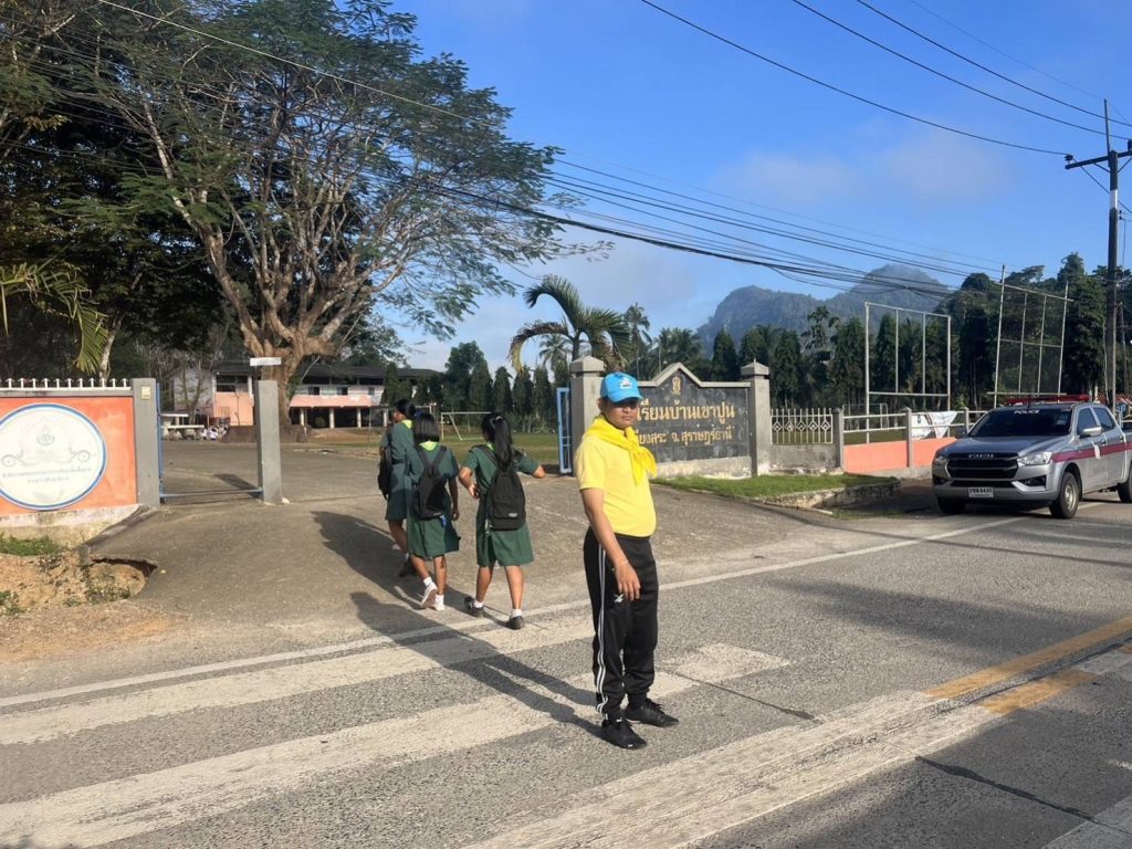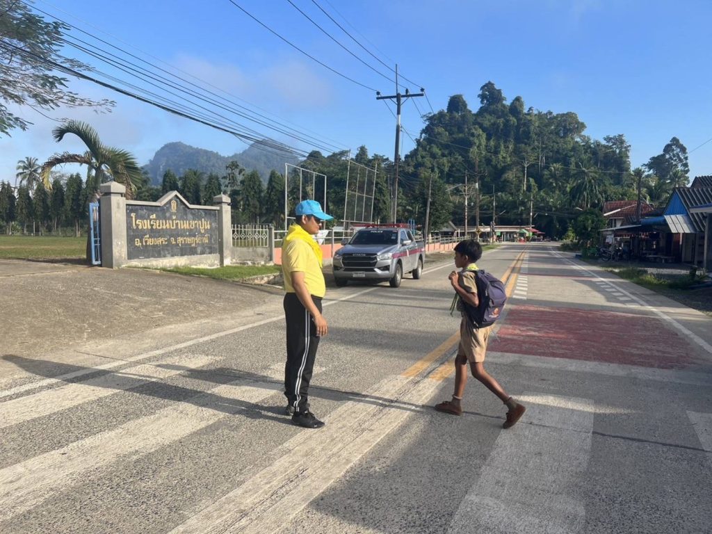 วันที่ 20 ธันวาคม 2566 เวลา 07:30 น. ร.ต.ต.บดินทร์ หนูนิล รอง สว.(ป.)สภ.เขานิพันธ์ ปฎิบัติหน้าที่จราจร พร้อมด้วยเจ้าหน้าที่ตำรวจ : จิตอาสาจราจร อำนวยความสะดวกการจราจร และเปิดสัญญานไฟวับวาบ เพื่อป้องกันการจราจรติดขัดและการเกิดอุบัติเหตุหน้าโรงเรียนบ้านเขาปูน ต.เขานิพันธ์ อ.เวียงสระ จ.สุราษฎร์ธานี