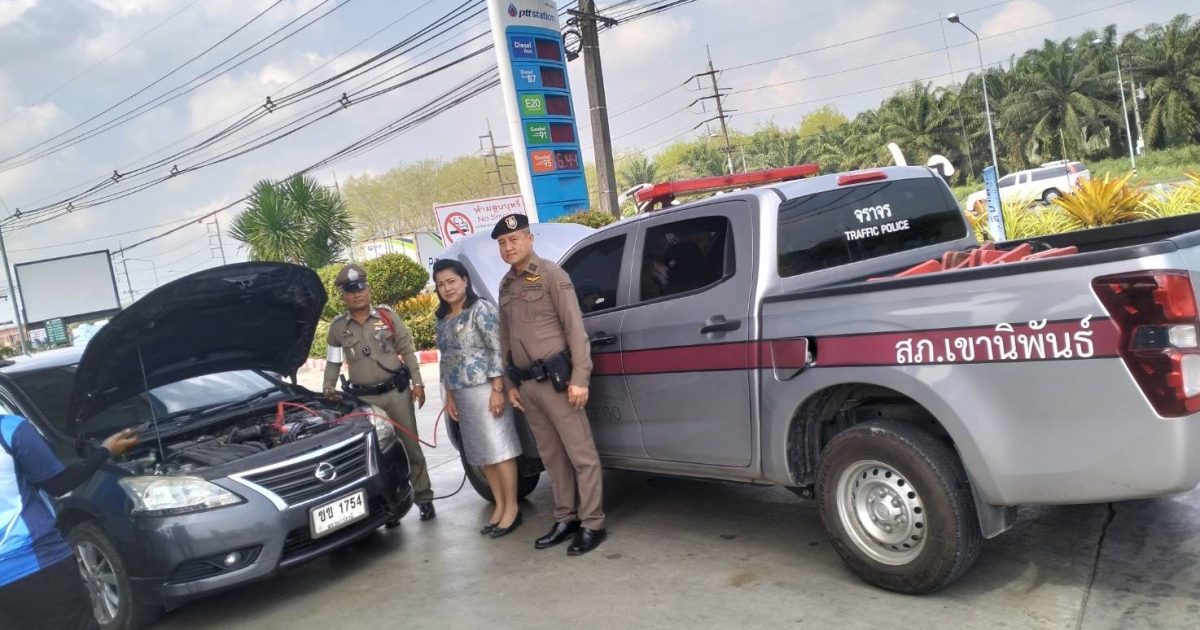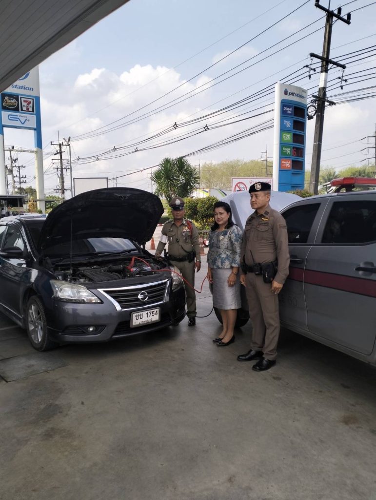 ขณะปฏิบัติหน้าที่พบประชาชนขอความช่วยเหลือ จึงดำเนินการเข้าช่วยเหลือ อำนวยความสะดวกประชาชน เหตุกรณี : รถยนต์แบตเตอรี่ หมดไฟ ได้ดำเนินการต่อพ่วงชาทไฟสามารถใช้งานเดินทางได้ปกติ