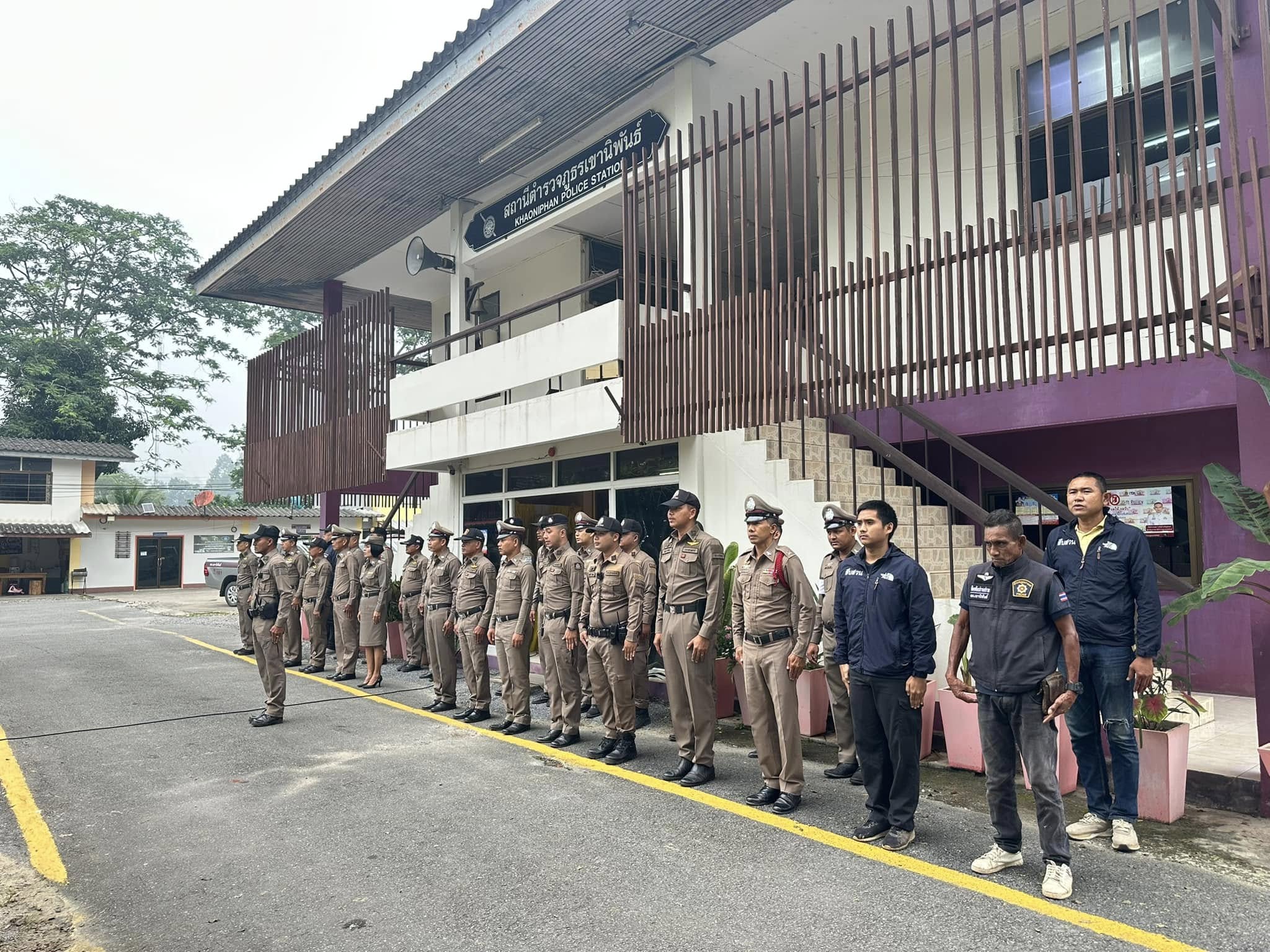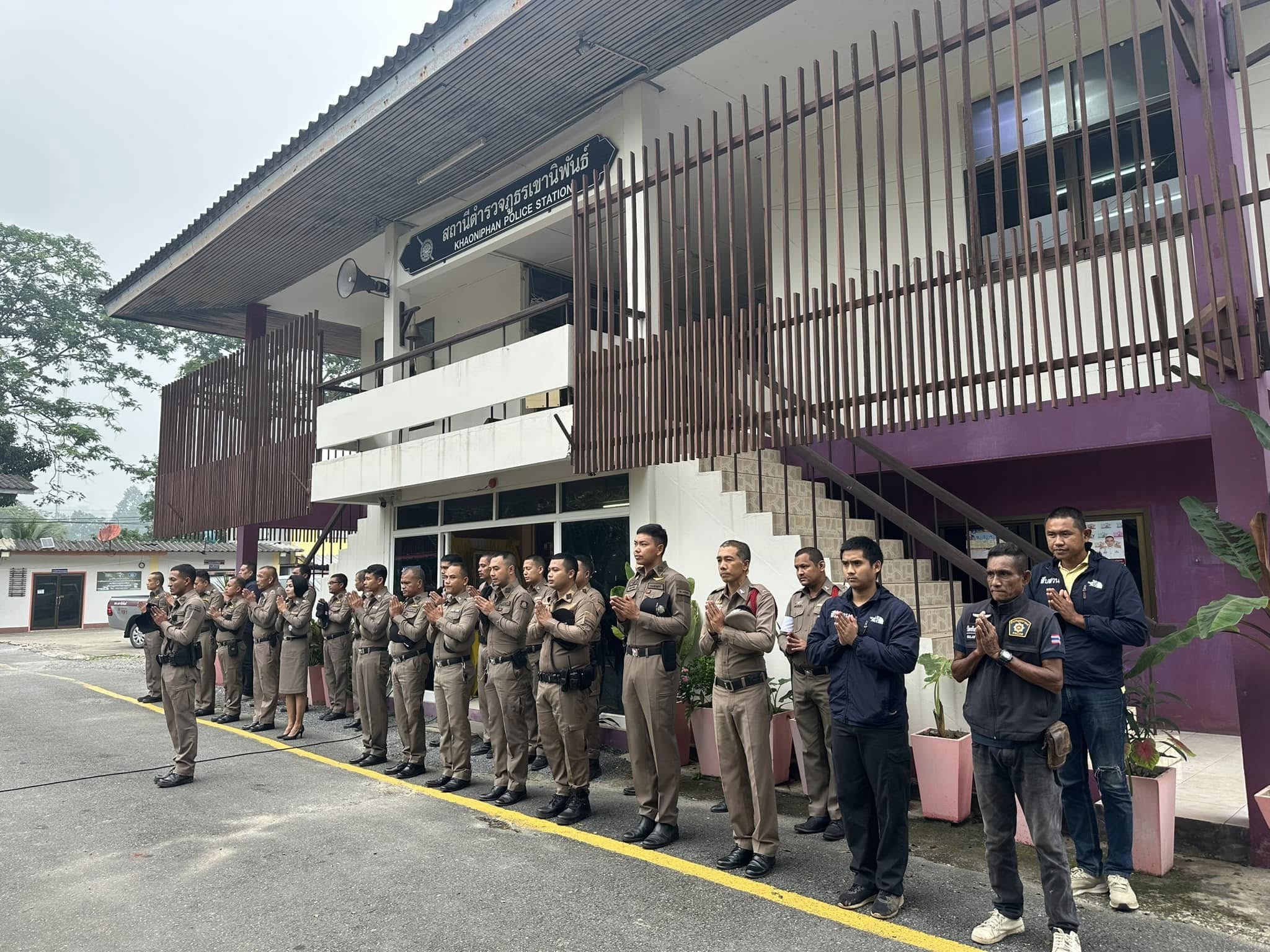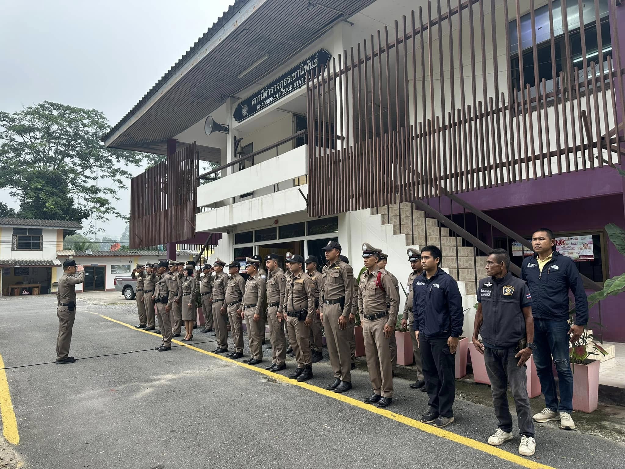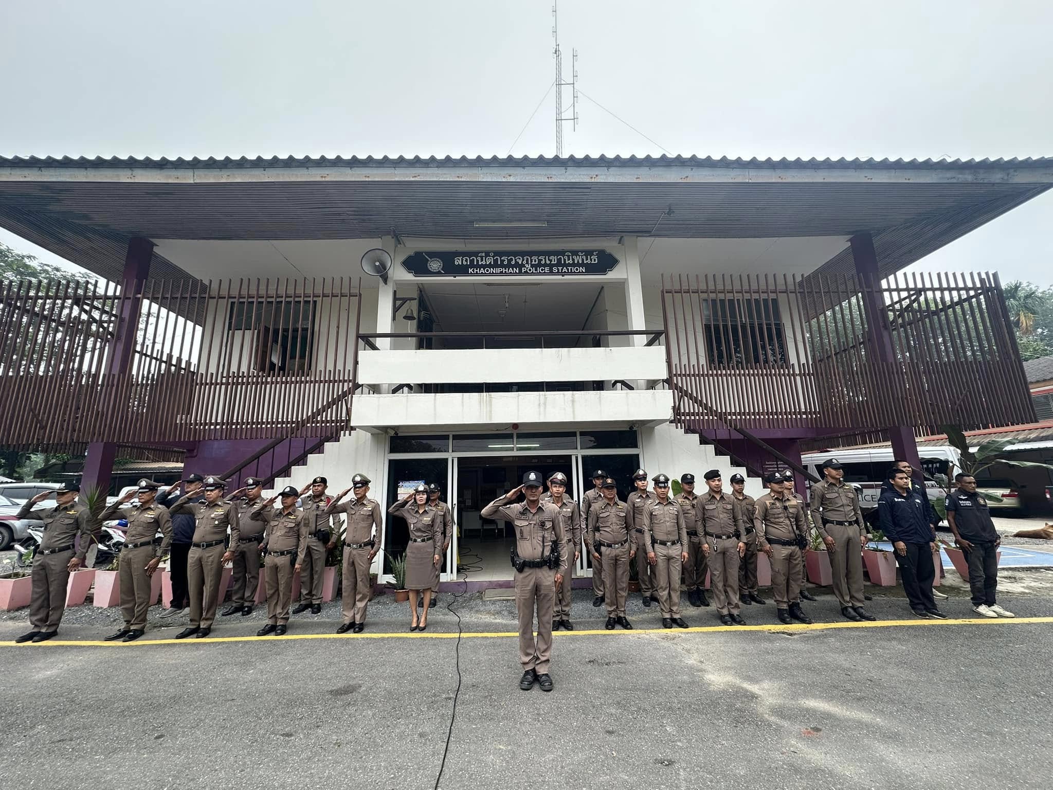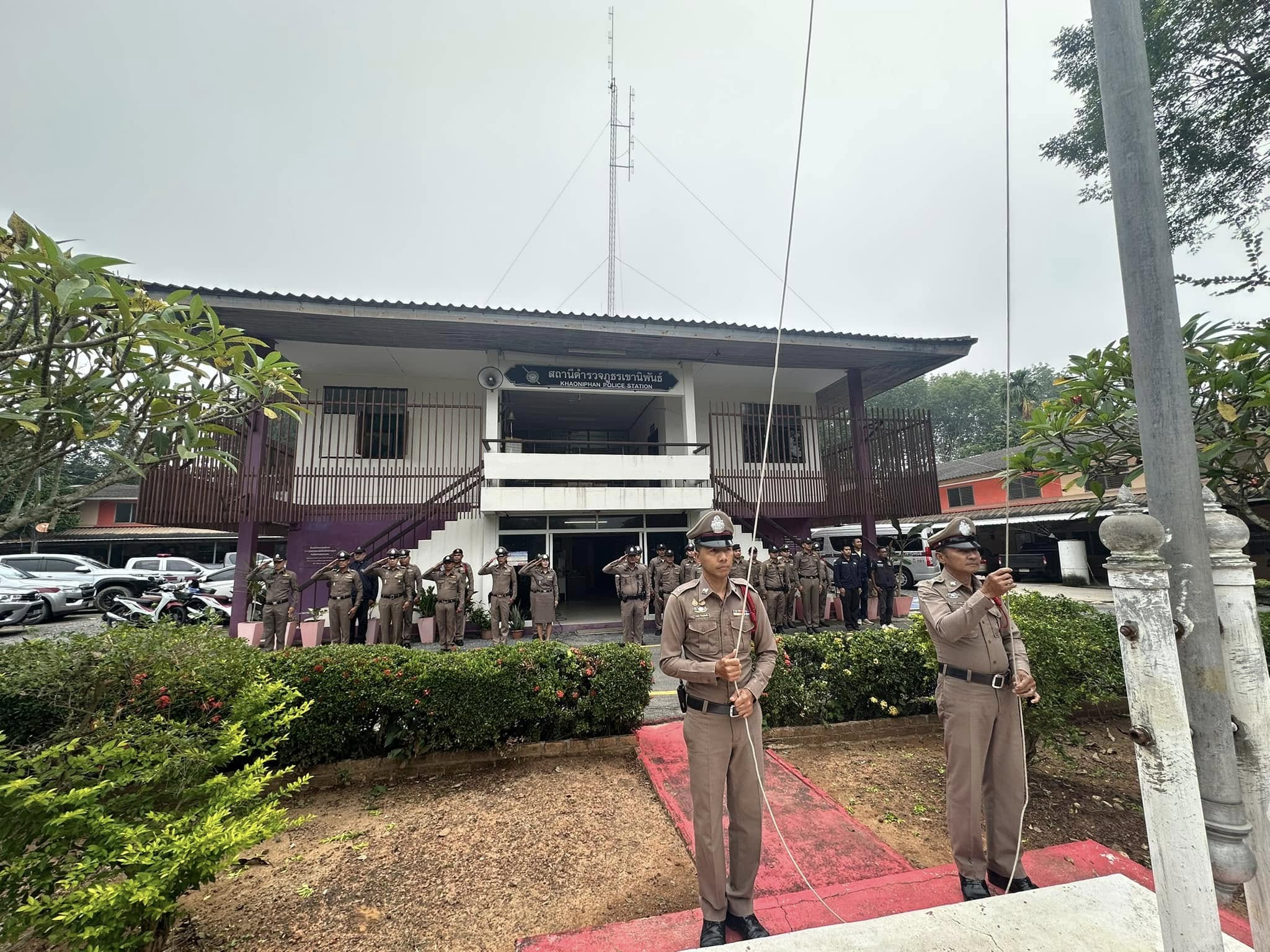 เข้าแถวเคารพธงชาติ กล่าวบทปลงใจและอุดมคติตำรวจ เพื่อแสดงออกถึงความจงรักภักดี ต่อชาติ ศาสนา พระมหากษัตริย์ 5 พฤศจิกายน 2567 โดย khaoniphan13 / การมีส่วนร่วมของหัวหน้าสถานี,ข่าวภารกิจผู้บังคับบัญชา,ข่าวประชาสัมพันธ์,งานอำนวยการ,ข่าวประชาสัมพันธ์,งานอำนวยการ,งานอำนวยการ พฤศจิกายน วันที่ 5 พฤศจิกายน 2567 เวลา 08:00 น. พ.ต.อ.วรวิทย์ เจริญศุภผล ผกก.สภ.เขานิพันธ์, พ.ต.ท.ธีระวัฒน์ มีรอสอ รอง ผกก.(สอบสวน)สภ.เขานิพันธ์, พ.ต.ท.นพดล เกิดกุลรัตน์ รอง ผกก.สส.สภ.เขานิพันธ์ พร้อมข้าราชการตำรวจในสังกัดเข้าแถวเคารพธงชาติกล่าวบทปลงใจและอุดมคติตำรวจ เพื่อแสดงออกถึงความจงรักภักดี ต่อชาติ ศาสนา พระมหากษัตริย์การเป็นข้าราชการตำรวจที่ดีการรักษาวินัย ตามระเบียบแบบแผนของตำรวจ ตรวจเครื่องแต่งกาย ทรงผม ความพร้อมในการปฏิบัติหน้าที่ณ ที่ทำการสถานีตำรวจภูธรเขานิพันธ์