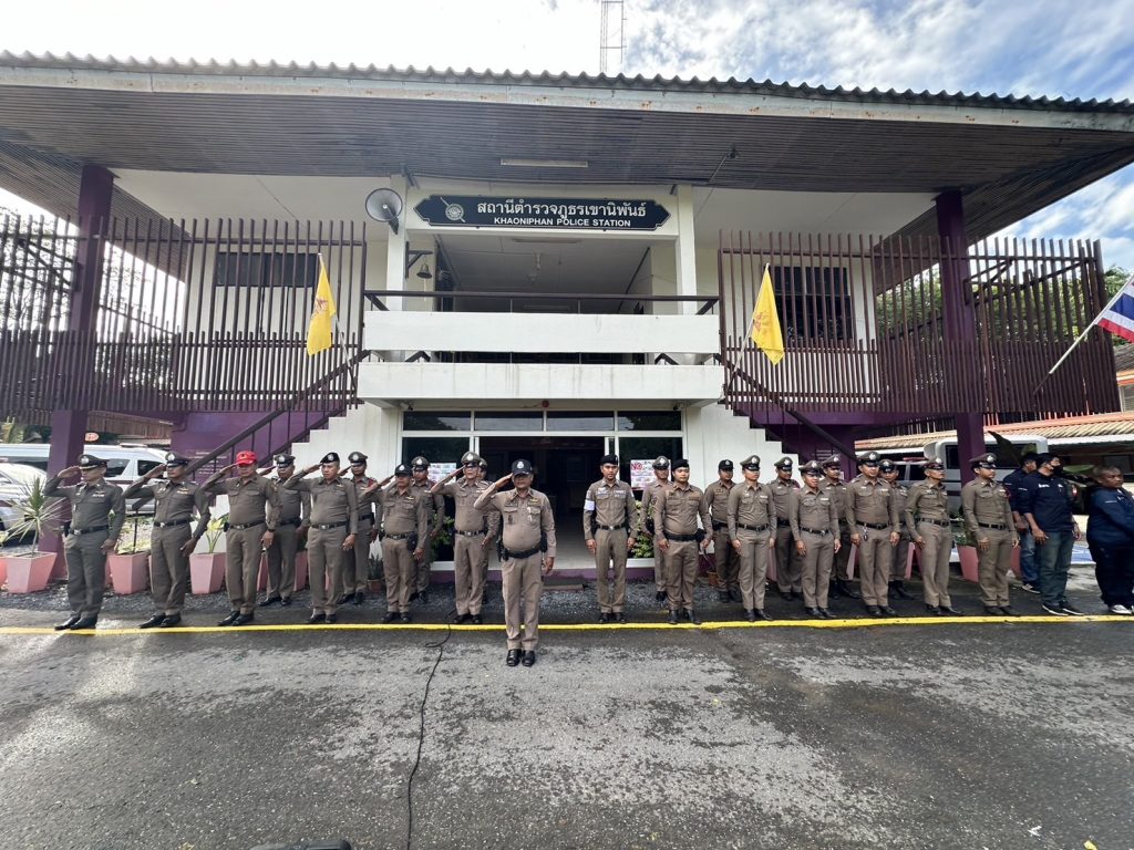 วันที่ 25 มิถุนายน 2567 เวลา 08:00 น. พ.ต.อ.วรวิทย์ เจริญศุภผล ผกก.สภ.เขานิพันธ์, พ.ต.ท.มงคล เพชรนิล รอง ผกก.ป.สภ.เขานิพันธ์, พ.ต.ท.ธีระวัฒน์ มีรอสอ รอง ผกก.(สอบสวน)สภ.เขานิพันธ์ พร้อมข้าราชการตำรวจในสังกัด สภ.เขานิพันธ์