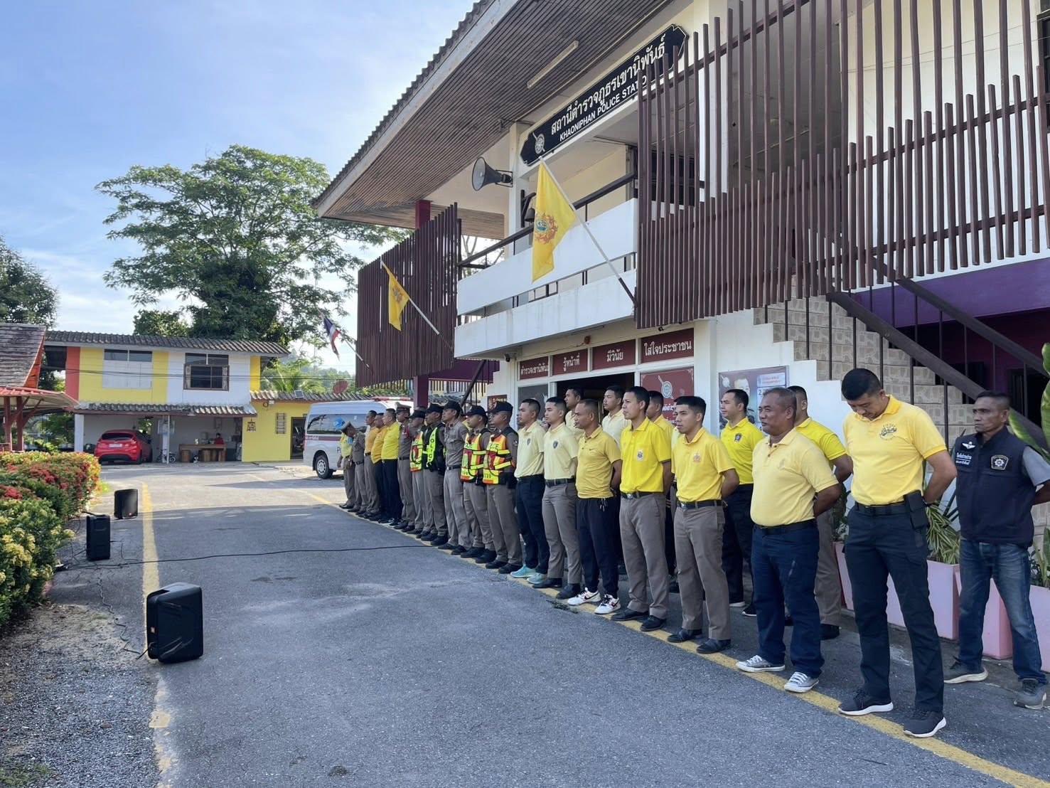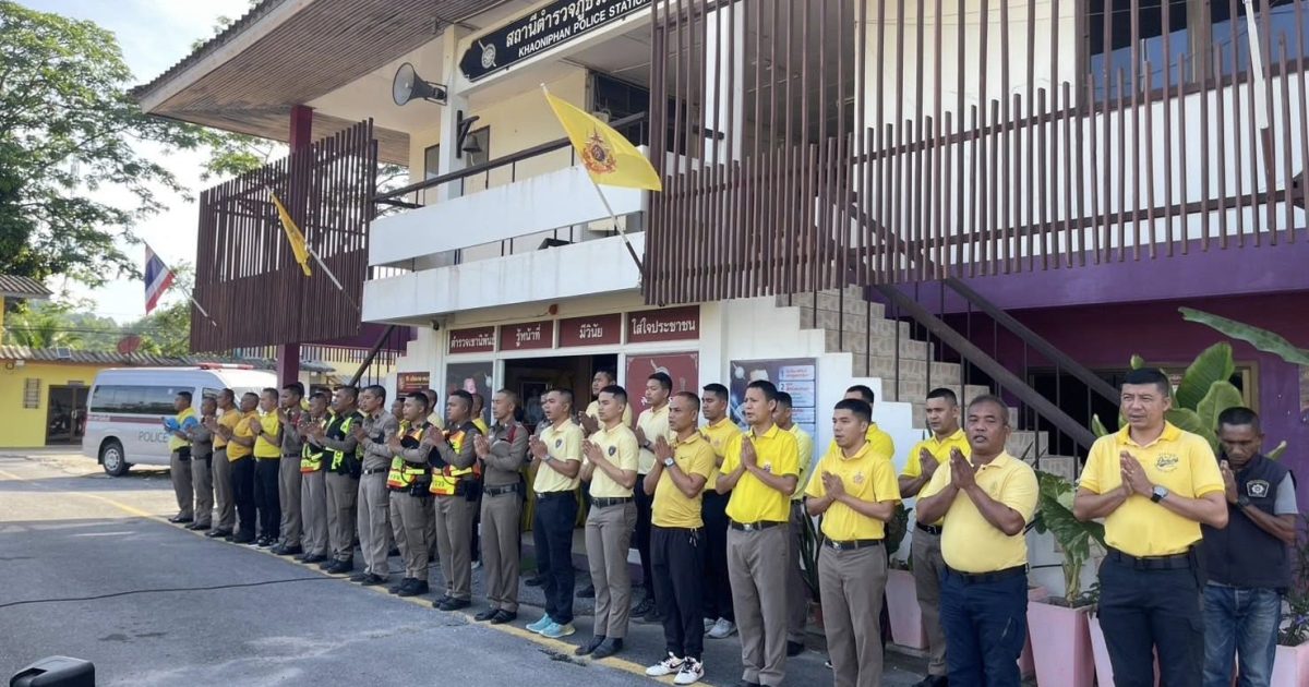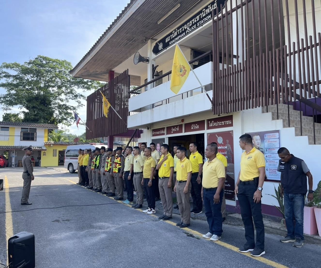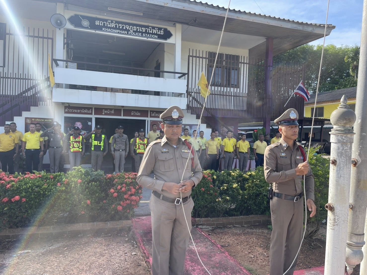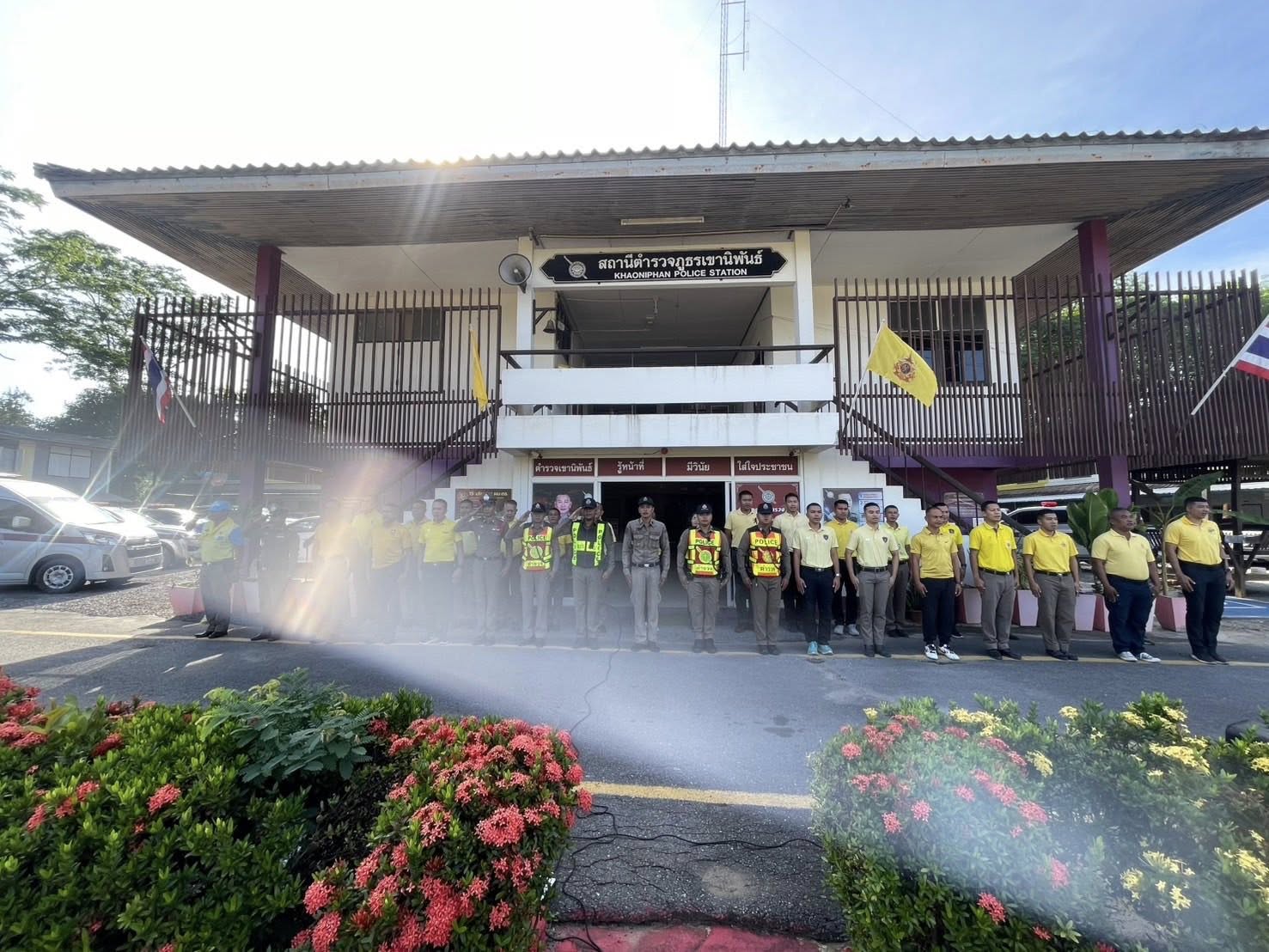เข้าแถวเคารพธงชาติ กล่าวบทปลงใจและอุดมคติตำรวจ เพื่อแสดงออกถึงความจงรักภักดี ต่อชาติ ศาสนา พระมหากษัตริย์ 22 เมษายน 2568 โดย khaoniphan13 / การมีส่วนร่วมของหัวหน้าสถานี,ข่าวภารกิจผู้บังคับบัญชา วันที่ 22 เมษายน 2568 เวลา 08:00 น. ว่าที่ พ.ต.อ.เวทิศ ปานชาตรีผกก.สภ.เขานิพันธ์ พ.ต.ท.ธีระวัฒน์ มีรอสอรอง ผกก.(สอบสวน)สภ.เขานิพันธ์พ.ต.ท.นพดล เกิดกุลรัตน์รอง ผกก.สส.สภ.เขานิพันธ์ข้าราชการตำรวจในสังกัดเข้าแถวเคารพธงชาติกล่าวบทปลงใจและอุดมคติตำรวจ เพื่อแสดงออกถึงความจงรักภักดี ต่อชาติ ศาสนา พระมหากษัตริย์การเป็นข้าราชการตำรวจที่ดีการรักษาวินัย ตามระเบียบแบบแผนของตำรวจ ตรวจเครื่องแต่งกาย ทรงผม ความพร้อมในการปฏิบัติหน้าที่ณ ที่ทำการสถานีตำรวจภูธรเขานิพันธ์#ตำรวจเขานิพันธ์รู้หน้าที่มีวินัยใส่ใจประชาชน