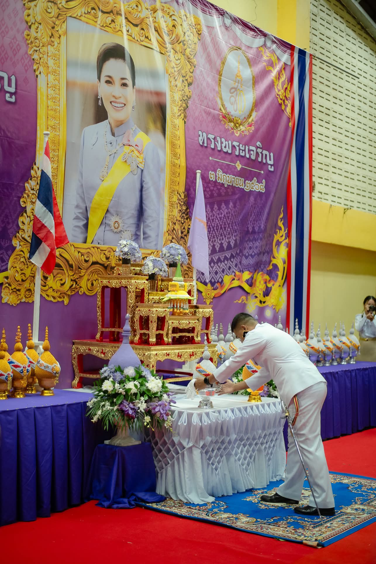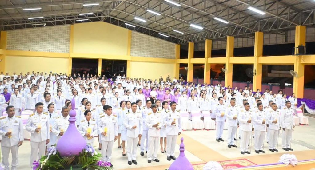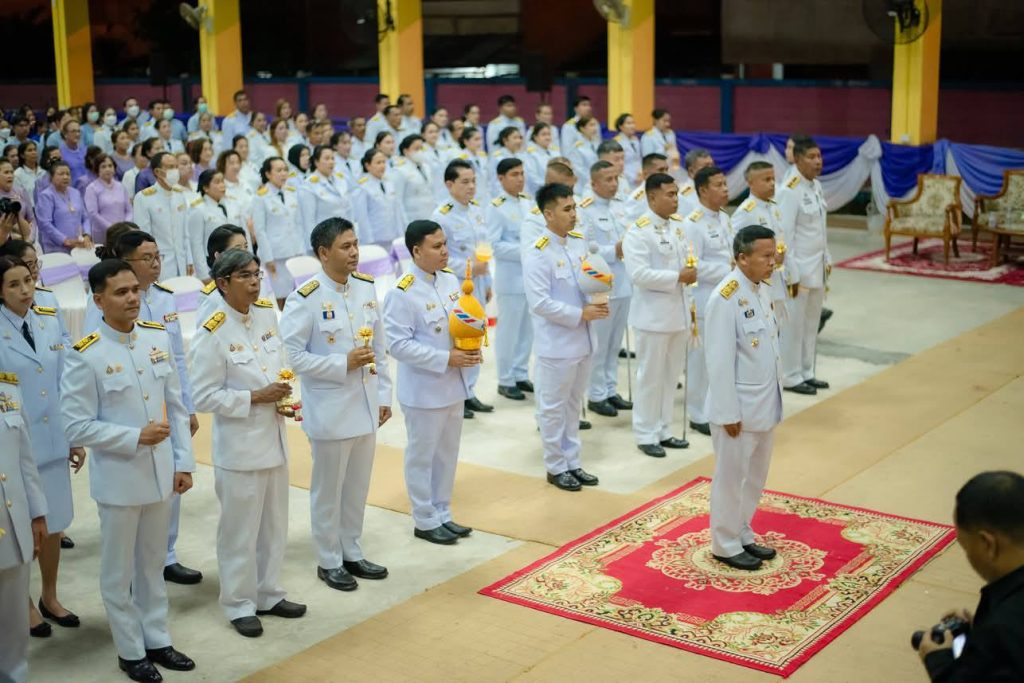 พิธีถวายเครื่องราชสักการะและวางพานพุ่ม และจุดเทียนถวายพระพรชัยมงคลเฉลิมพระเกียรติ 3 มิถุนายน 2568 โดย khaoniphan13 / การมีส่วนร่วมของหัวหน้าสถานี,ข่าวประชาสัมพันธ์,ข่าวกิจกรรม,ข่าวประชาสัมพันธ์,ข่าวภารกิจผู้บังคับบัญชา วันที่ 3 มิ.ย.2568 เวลา 17:00 น. ว่าที่ พ.ต.อ.เวทิศ ปานชาตรีผกก.สภ.เขานิพันธ์ ข้าราชการตำรวจ สภ.เขานิพันธ์ร่วมพิธีถวายเครื่องราชสักการะและวางพานพุ่ม และจุดเทียนถวายพระพรชัยมงคลเฉลิมพระเกียรติสมเด็จพระนางเจ้าฯ พระบรมราชินี เนื่องในโอกาสวันเฉลิมพระชนมพรรษา 3 มิถุนายน 2568ณ หอประชุมโรงเรียนหัวสะพานมิตรภาพที่ 217#ตำรวจเขานิพันธ์รู้หน้าที่มีวินัยใส่ใจประชาชน