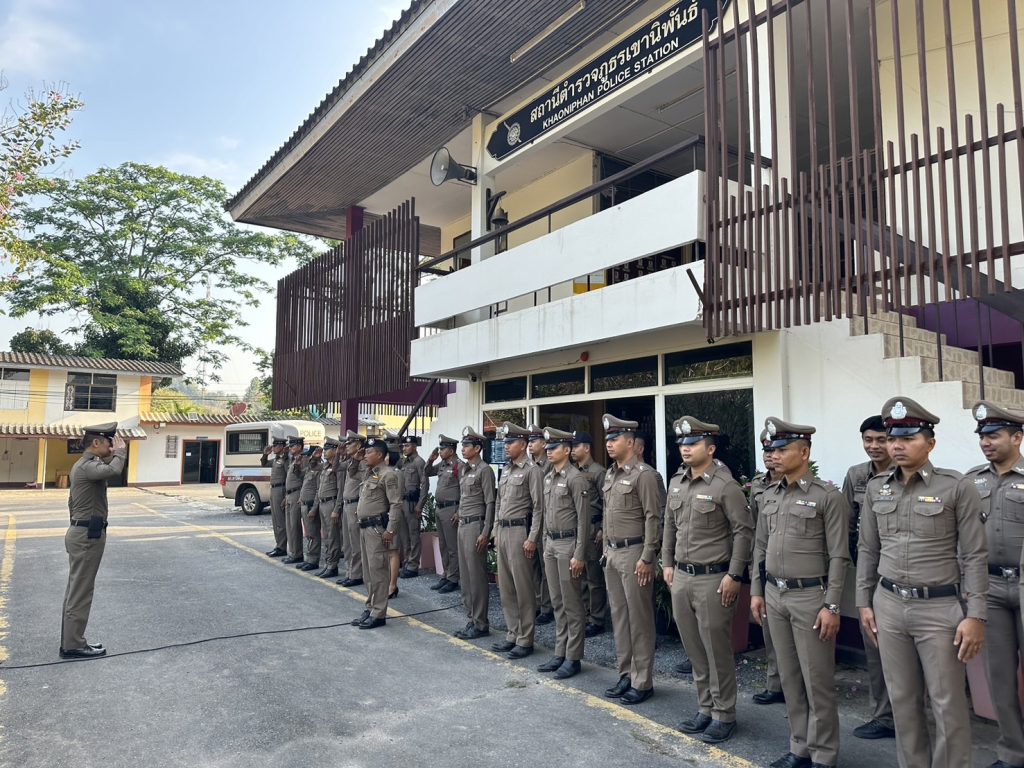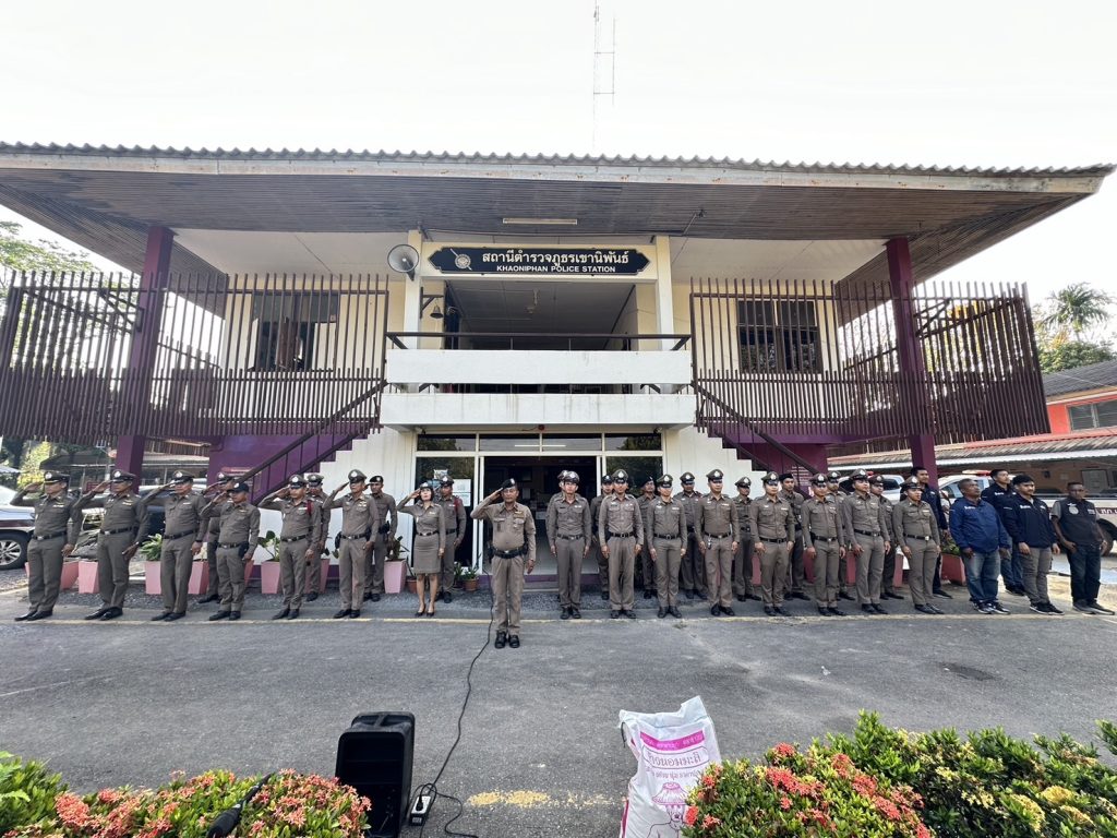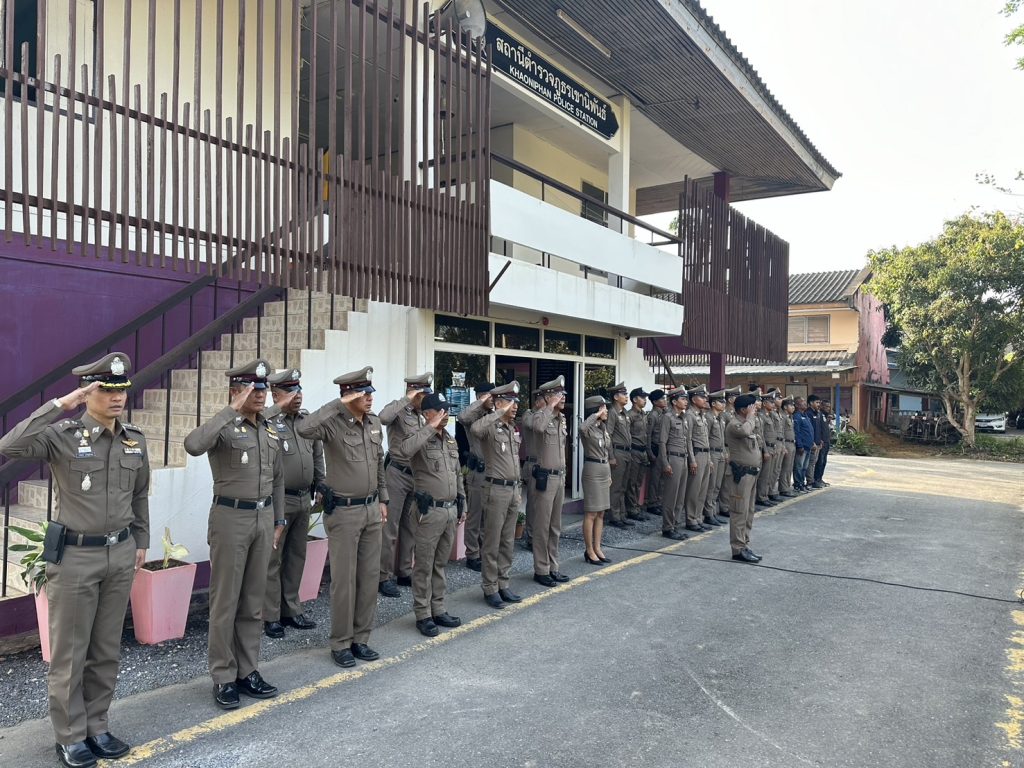 วันที่ 6 กุมภาพันธ์ 2567 เวลา 08:00 น. พ.ต.อ.วรวิทย์ เจริญศุภผล ผกก.สภ.เขานิพันธ์, พ.ต.ท.มงคล เพชรนิล รอง ผกก.ป.สภ.เขานิพันธ์, พ.ต.ท.ธีระวัฒน์ มีรอสอ รอง ผกก.(สอบสวน)สภ.เขานิพันธ์ พร้อมข้าราชการตำรวจในสังกัด