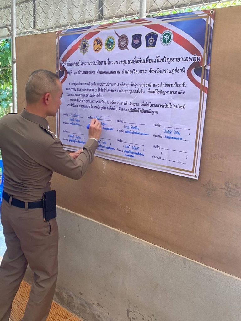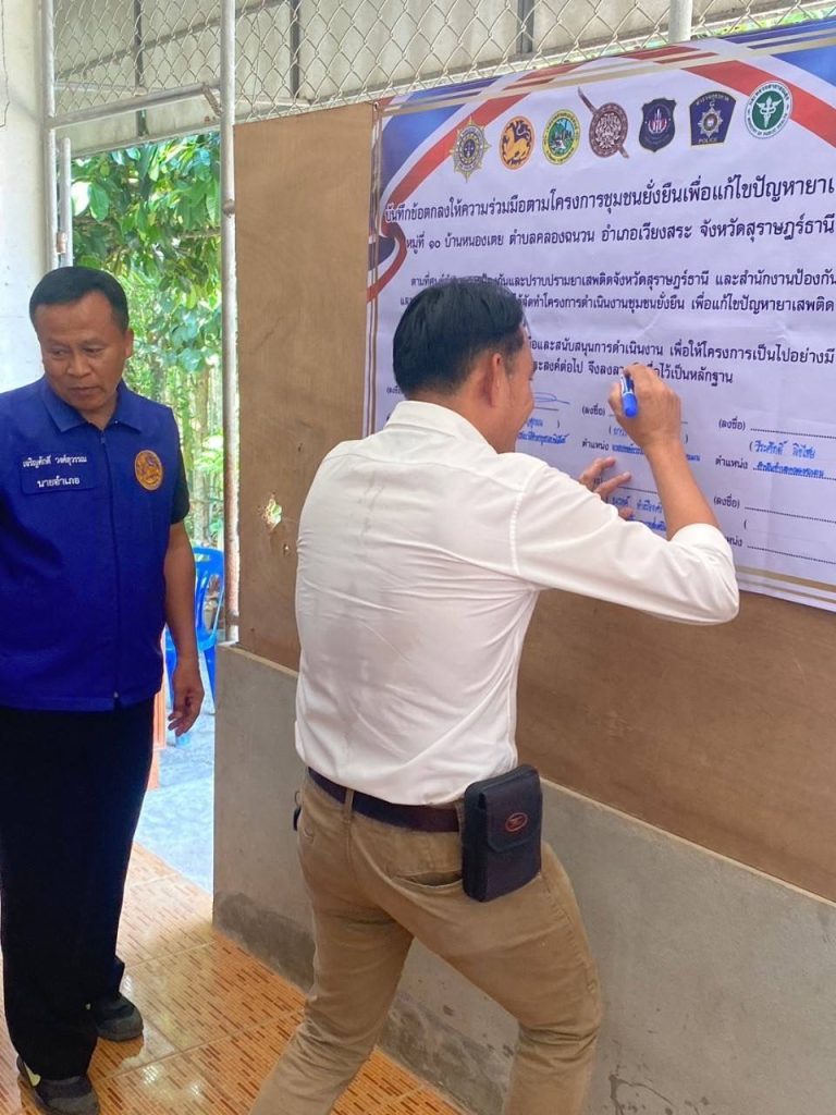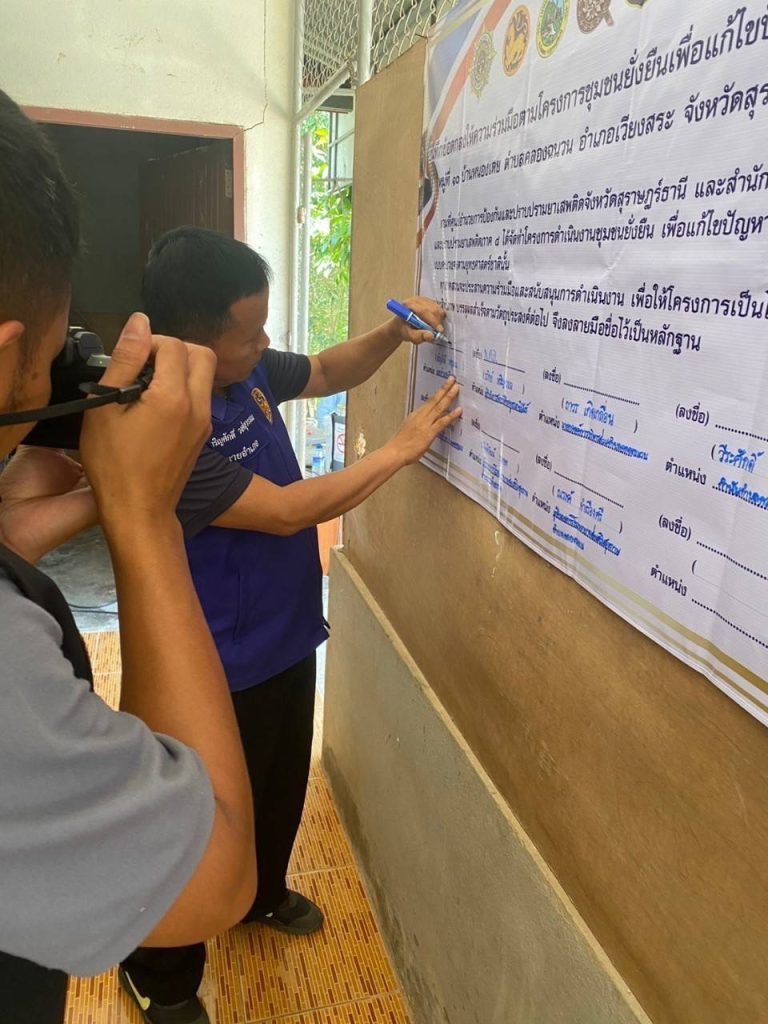 โดยมีนายเจริญศักดิ์ วงศ์สุวรรณ นายอำเภอเวียงสระ เป็นประธานพิธี เปิดโครงการ”ดำเนินงานชุมชนยั่งยืน เพื่อแก้ไขปัญหายาเสพติดแบบครบวงจร ตามยุทธศาตร์ชาติ” พร้อมด้วย ผอ.รพ.สต.บ้านห้วยกรวด, นายก อบต.ตำบลคลองฉนวน, กำนัน, ผู้ใหญ่บ้าน, อาสาสมัคร อสม.ในพื้นที่ พร้อมทั้งได้ลงนามทำ mou ร่วมกันในการดำเนินงานโครงการชุมชนยั่งยืน