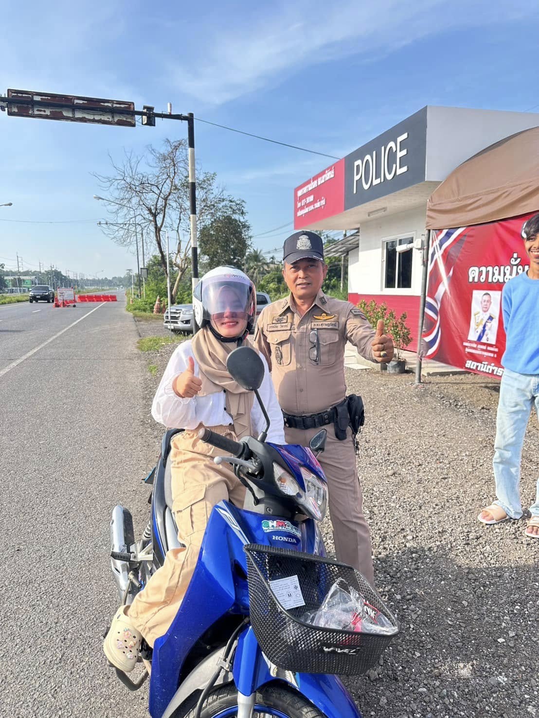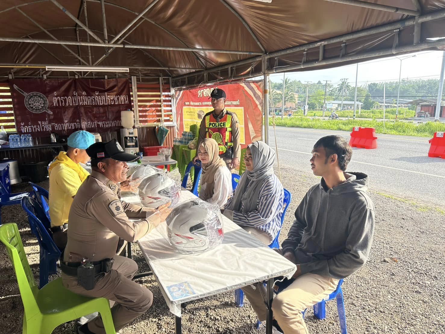 ประชาสัมพันธ์รณรงค์การปฏิบัติตามวินัยจราจรขับขี่ปลอดภัยให้สวมหมวกนิรภัยและอบรมให้ความรู้ ตักเตือนประชาชนที่ไม่สวมหมวกนิรภัย พร้อมทั้งมอบหมวกนิรภัยให้แก่ประชาชน