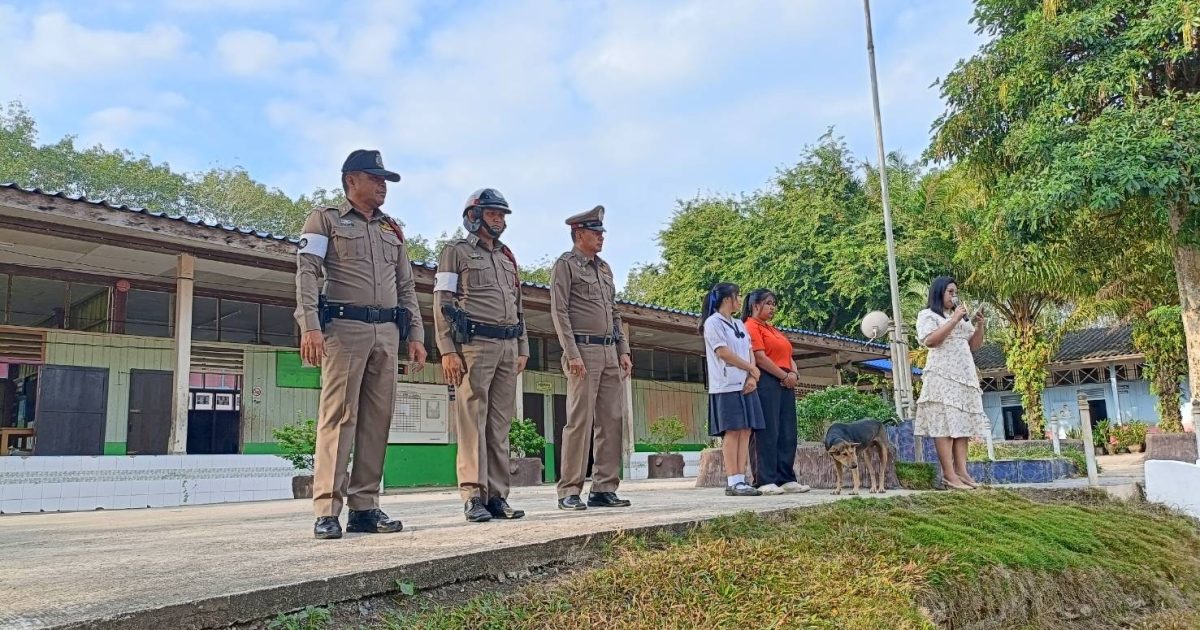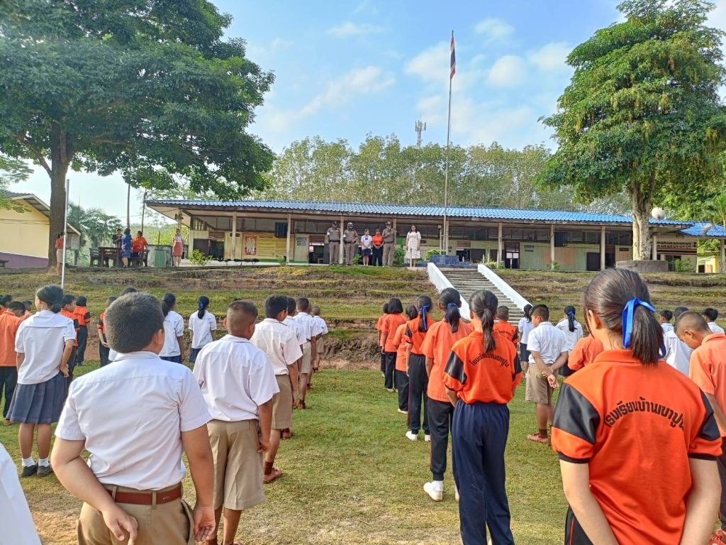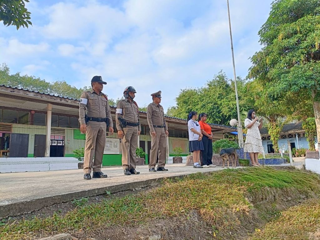 บรรยายให้ความรู้ ตามโครงการ “ครู 5 นาที” หน้าเสาธงให้กับนักเรียน โรงเรียนบ้านเขาปูน ต.เขานิพันธ์ อ.เวียงสระ จ.สุราษฎร์ธานี