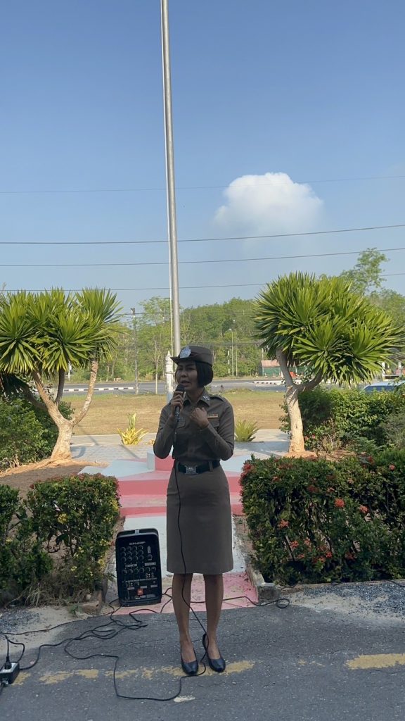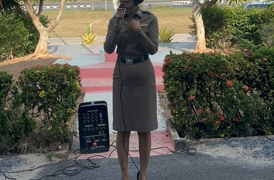 ดำเนินโครงการ “ฝึกทักษะการพูดข้าราชการตำรวจสถานีตำรวจภูธรเขานิพันธ์” โดยมีข้าราชการตำรวจร่วมกิจกรรมทุกวันอังคารที่มีการเข้าแถวเคารพธงชาติ