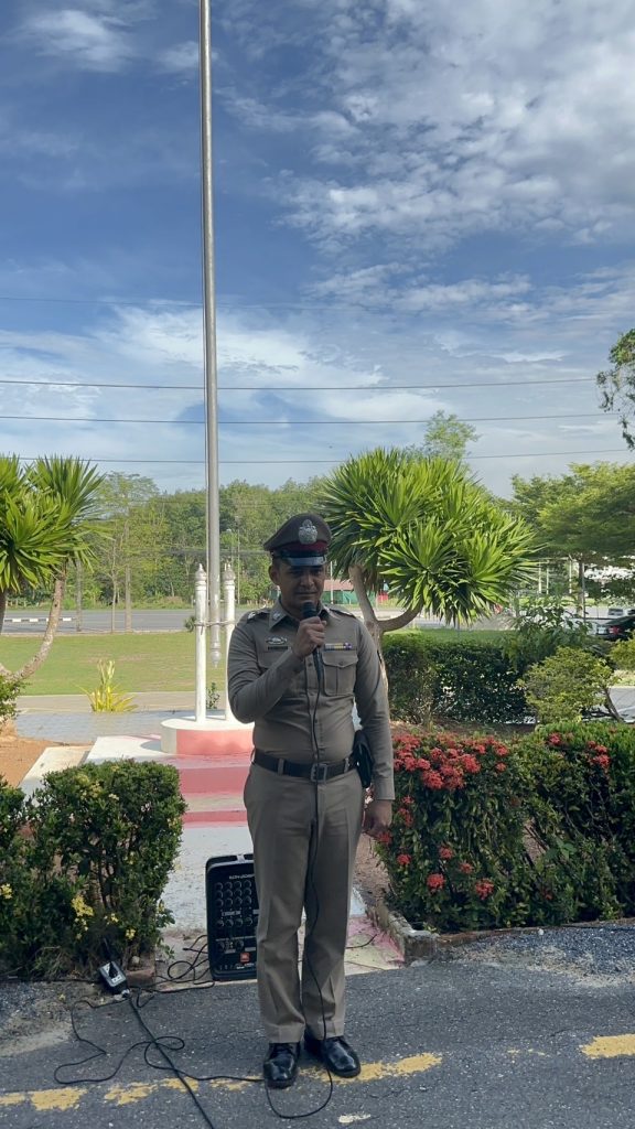 ดำเนินโครงการ “ฝึกทักษะการพูดข้าราชการตำรวจสถานีตำรวจภูธรเขานิพันธ์” โดยมีข้าราชการตำรวจร่วมกิจกรรมทุกวันอังคารที่มีการเข้าแถวเคารพธงชาติ