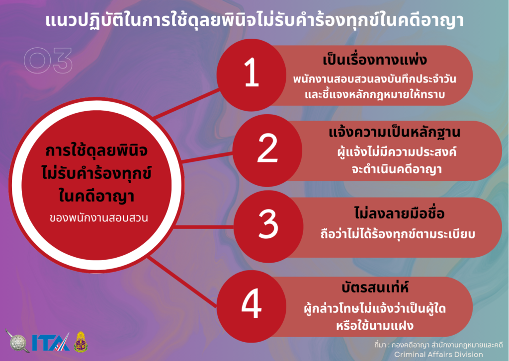 แนวปฏิบัติในการใช้ดุลยพินิจไม่รับคำร้องทุกข์ในคดีอาญา